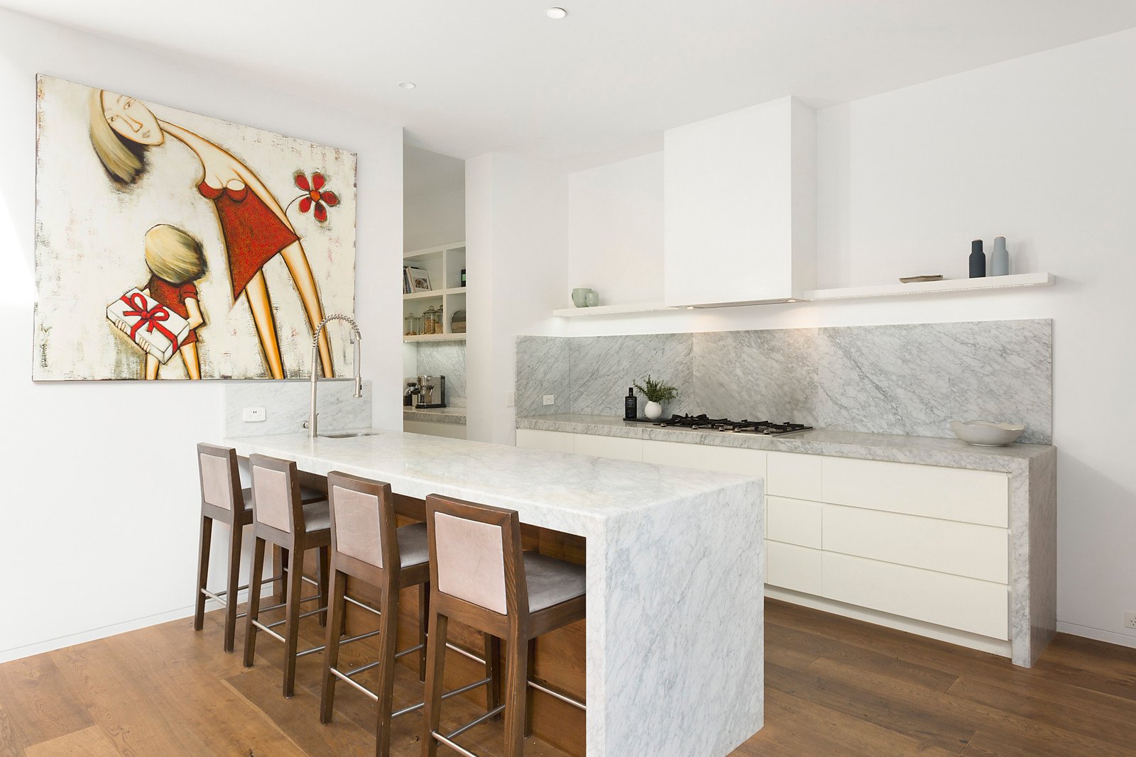 An imposing arched entrance hall featuring Baltic pine floors introduces elegant sitting and formal dining rooms, both with marble open fireplaces. Separated by a tranquil private bluestone courtyard with BBQ and water feature, the brilliant full width extension is flooded with northern light through soaring double height glass. Wide European oak floors flow through the expansive living and dining room with gas fireplace and a sleek gourmet marble kitchen boasting a full butler's pantry with 4 ovens and 2 dishwashers. Ideal for entertaining, the living spaces open completely to the central courtyard and the private rear bluestone courtyard. An abundance of flexible accommodation comprises the stunning main bedroom with full width balcony, exquisite en-suite and walk in robe, three additional double bedrooms with built in robes, a study and two stylish bathrooms. Above the double garage accessed by rear bluestone lane, there are two further double bedrooms and a sleek bathroom.