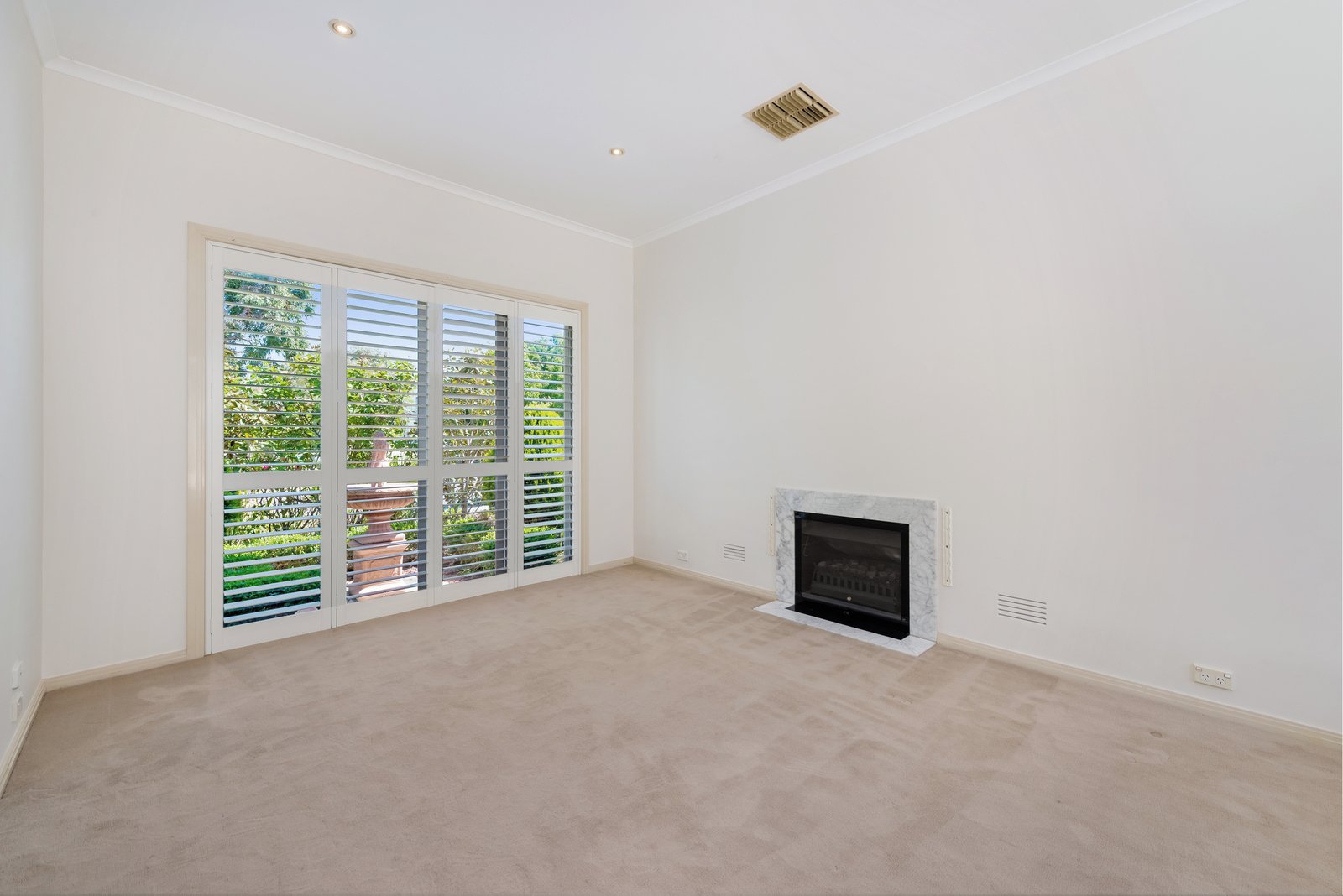 Downstairs, formal sitting, and dining areas flow effortlessly into a light-filled casual living and meals space, all centred around a well-appointed kitchen with stone benchtops and quality modern appliances. A stunning fireplace creates a warm focal point in the main living zone, with sliding doors open out to a sun courtyard