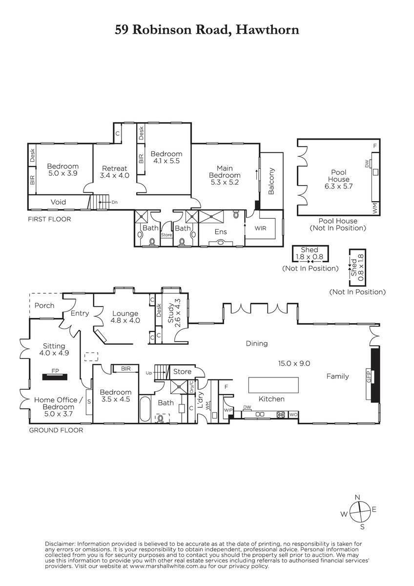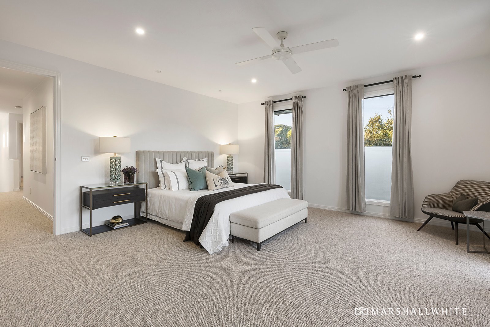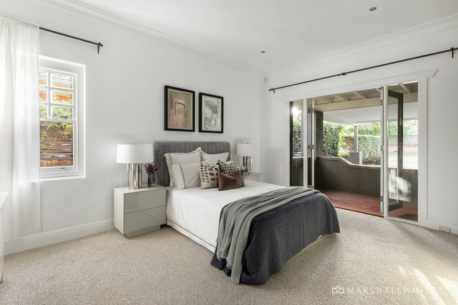 The flexible zoned accommodation is ideal for growing or teenage families and features beautiful timber floors with an entrance hall leading to two downstairs bedrooms (one with adjacent sitting room), second living room or library and a pristine sky lit bathroom through to a study and laundry. Upstairs has a retreat/study area, two family bathrooms and three further bedrooms, the rear main includes a balcony, WIR and ensuite. The magnificent family living and dining room with floor-to-ceiling windows includes a superbly appointed Miele and Stirling stainless steel kitchen opening to paved alfresco areas with vine-clad pergolas overlooking a deep solar heated pool/spa and pool house with kitchen and laundry amenities in a private rear garden. Other comprehensive features include video intercom, an alarm, hydronic heating, high end fixtures and fittings, new carpets, surround sound, two gas FPs, ducted evaporative cooling, 15,000ltr tanks, garden sheds, auto gates and a double carport.