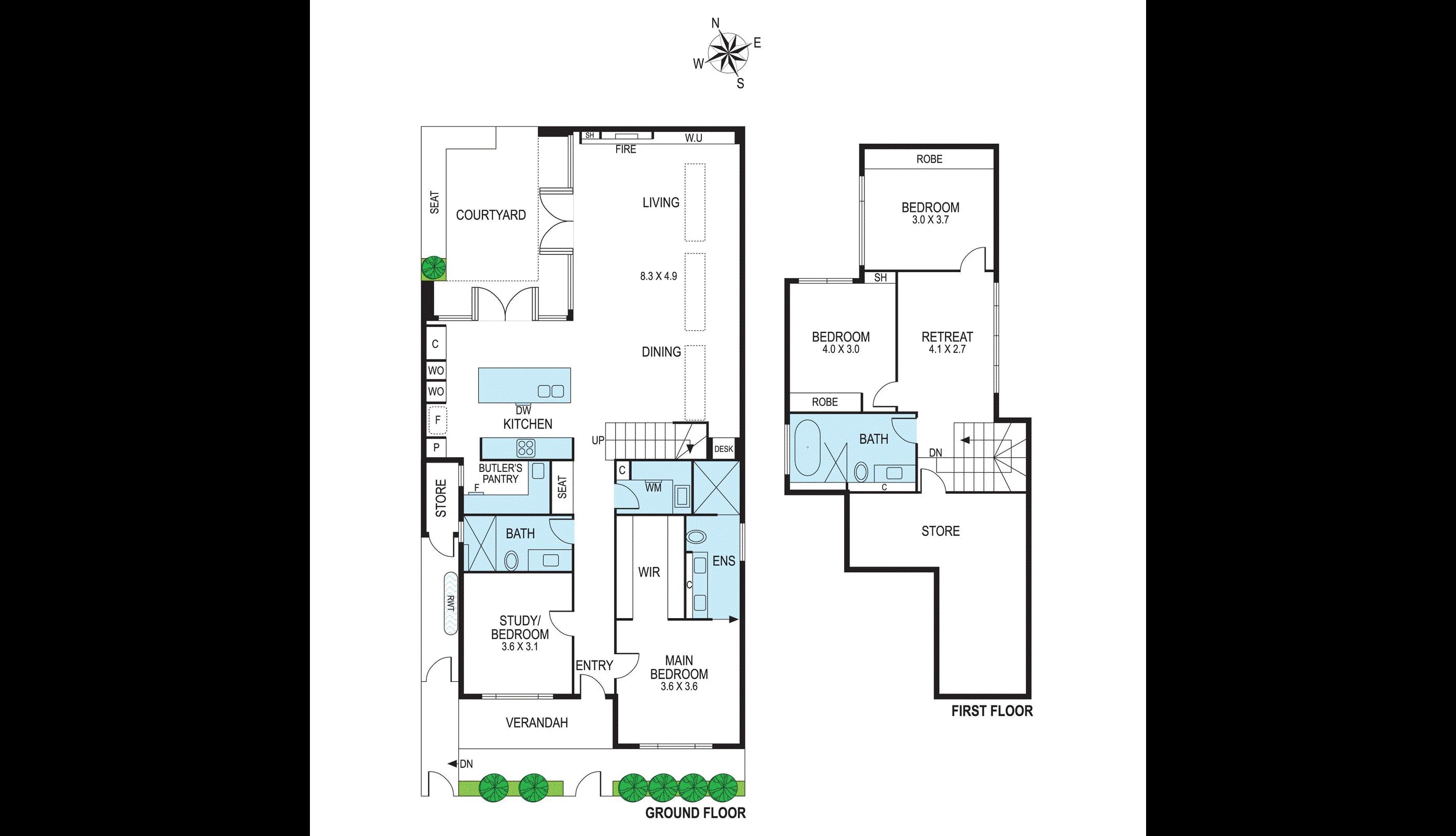The flexible four-bedroom (or three plus study) layout is designed with both luxury and liveability in mind. The opulent main suite is a true retreat, complete with an expansive walk-in robe with full-height cabinetry and a sleek designer ensuite. Upstairs, two serene robed bedrooms are accompanied by a light-filled retreat and a stunning central bathroom, while the ground-floor study offers the option of a fourth bedroom, serviced by its own adjacent bathroom.