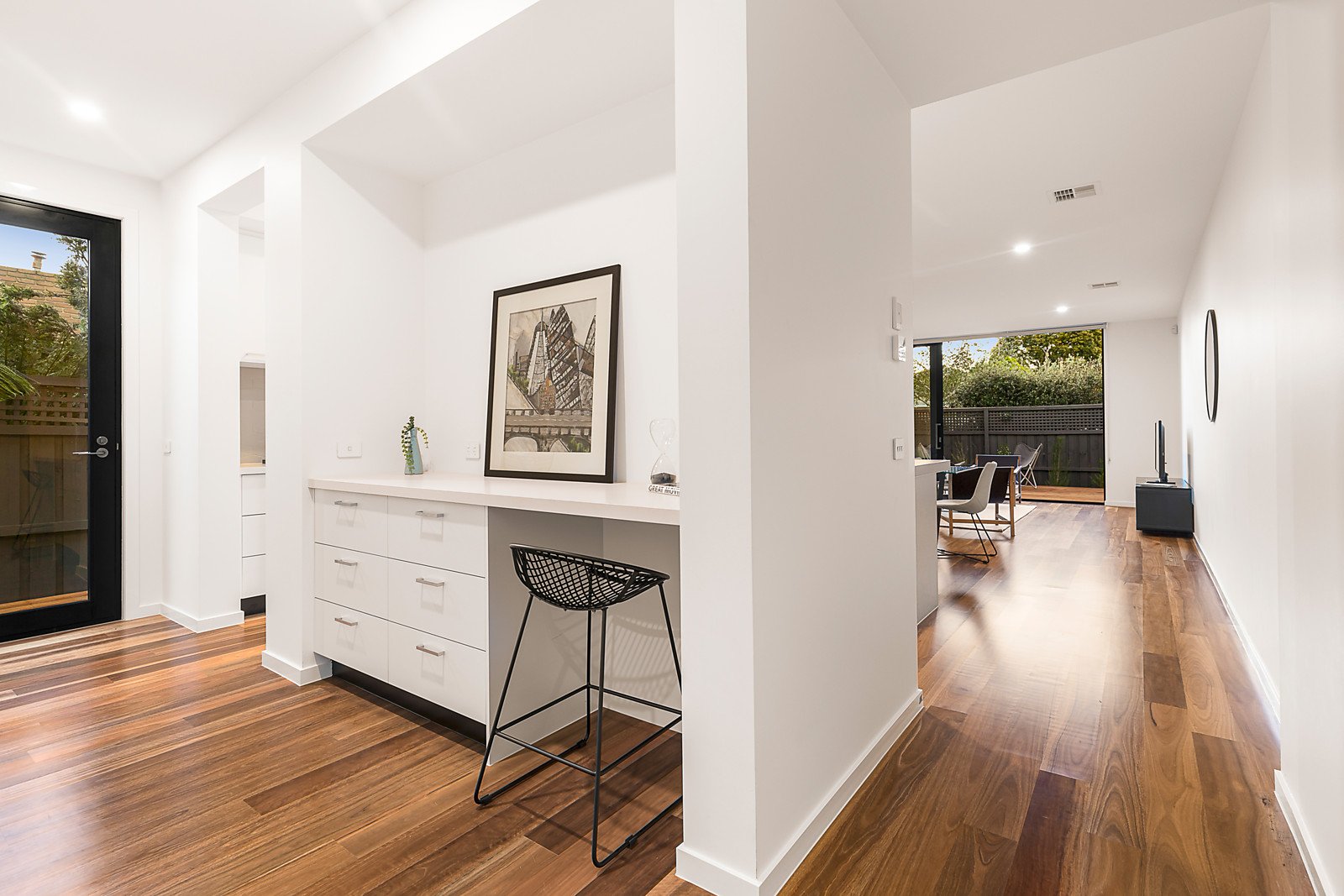 A prime location opposite Banksia Reserve is the perfect address for prestige living in a newly-built townhouse. Well-designed residence has plenty of space and easy-care indulgence, three blocks from Beaumaris Primary School and minutes from the beach. The three-bedroom design is exceptional with living areas and bedrooms across two levels. The spacious family room and meals area impresses for everyday living and entertaining, and the gourmet kitchen is stylish and functional with Caesarstone Raw Concrete benchtops, self-cleaning oven, gas cooktop and Miele dishwasher. Families will appreciate the upstairs living area complete with leafy views, the main bedroom can be upstairs or downstairs, and the three bathrooms and powder room are stylish. Meticulous planning has gone into choosing quality finishes and features, including the established landscaping, study nook with charging points, ground-floor bedroom with ensuite, zoned integrated ducted heating and air conditioning, spotted gum floors, zoned watering system and outdoor sensor lighting. You can relax outside on a choice of decked areas, start your day with a walk around the wide-open spaces opposite, and enjoy living in the Beaumaris Secondary College zone and minutes from Concourse shops and cafes.