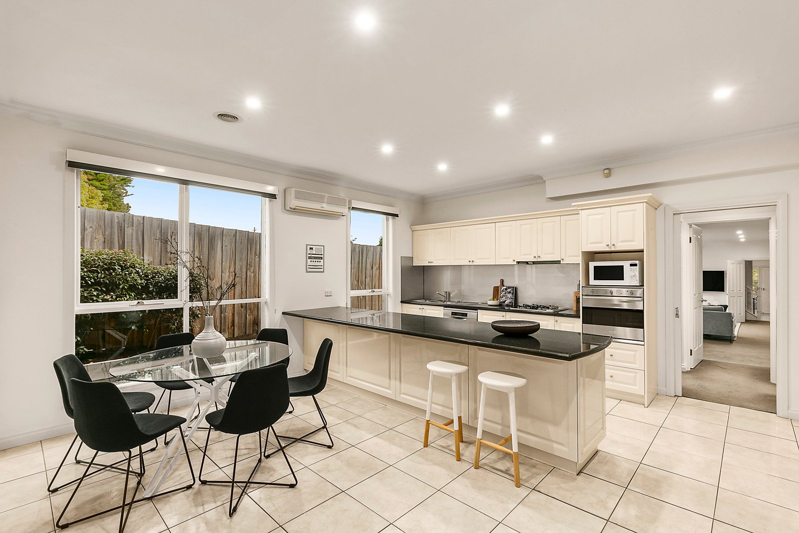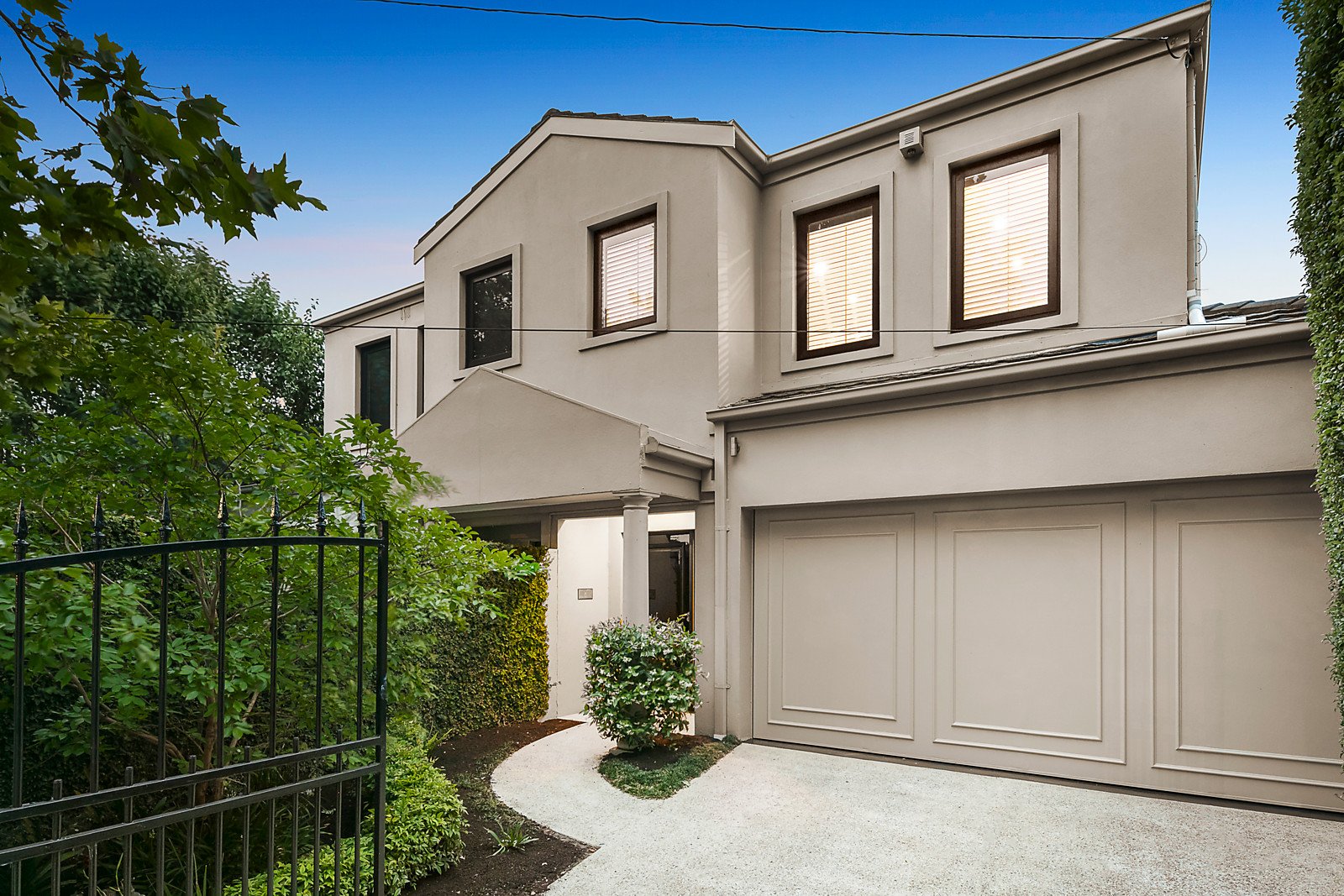 Boasting a flexible floorplan awash with natural light, the inviting interior features a generous central lounge room warmed by an open fireplace and extending out to a side courtyard, complemented by a relaxed living and dining area served by a well equipped kitchen with granite benches and European appliances including gas cooktop, wall oven and dishwasher. Outside, the sun drenched low maintenance garden is perfect for entertaining. Upstairs, the spacious main bedroom with leafy views has built in robes and a sleek ensuite, accompanied by two further bedrooms with robes and a fully tiled family bathroom with freestanding bath and separate toilet. Additionally, two separate study zones present versatile working from home capabilities.