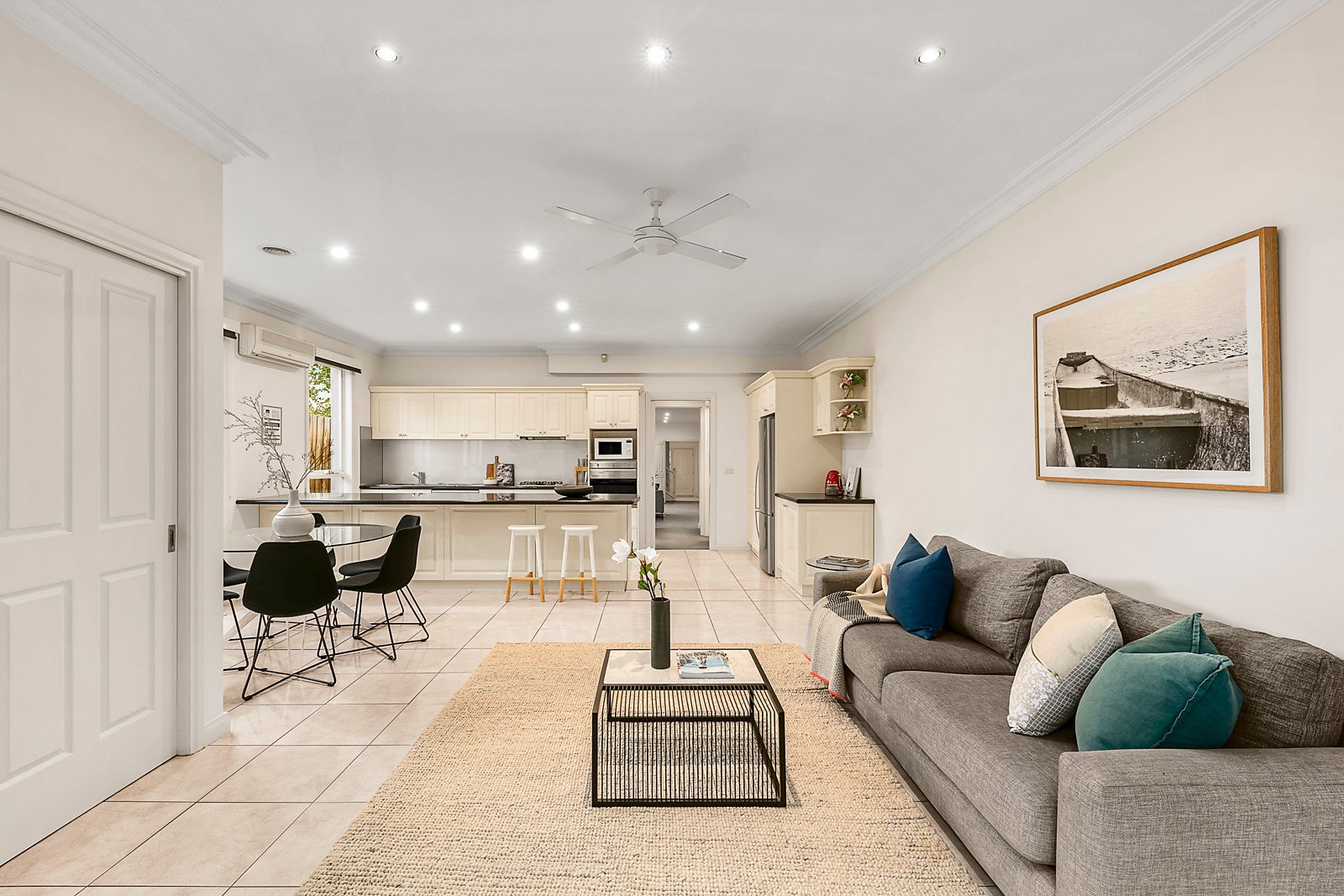 Impeccably presented throughout, it includes powder room, laundry, ample storage, plantation shutters, split system air conditioning, ducted heating and cooling, alarm, remote double garage with internal access and electric gate.