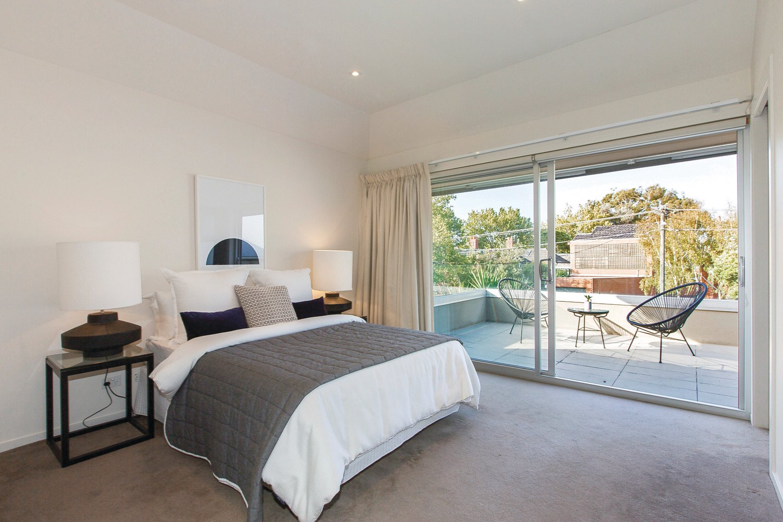 A sensational statement in style, the brilliant design of this architecturally striking residence's unexpectedly spacious dimensions provides a rare combination of sophistication and serenity in a coveted cul de sac location near the beach, the lake, Fitzroy St, light rail and Middle Park Village. Radiantly light and superbly spacious, the expansive open plan living and dining spaces with a stunning gourmet Smeg kitchen boasting stone benches opens through bi-fold doors to west-oriented private landscaped garden surrounds with a BBQ deck. American oak stairs lead up to superbly proportioned family accommodation comprising a gorgeous main bedroom with designer en-suite, walk in robe and north balcony, two double bedrooms with built in robes, a retreat and stylish bathroom. This inspired home also includes ducted heating and cooling, alarm, video intercom, auto blinds, remote sun-awning, powder-room, laundry, water tank, storage and internally accessed large garage, plus further off street parking.