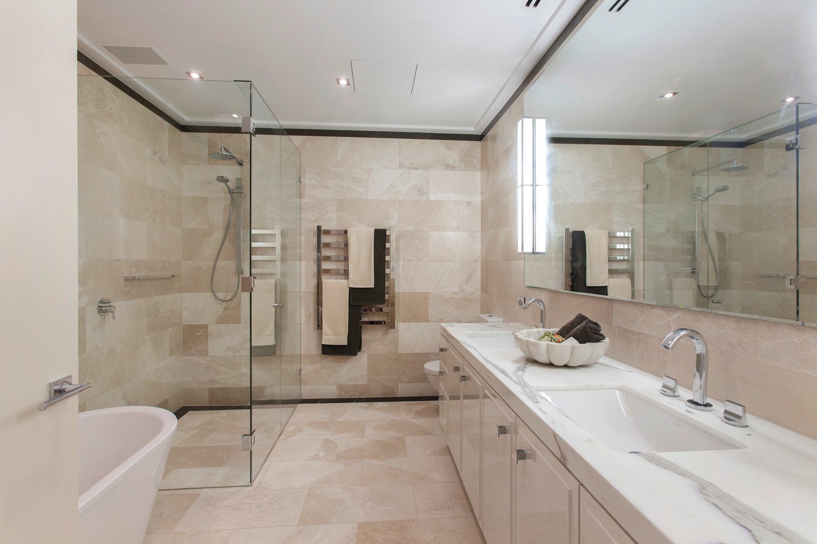 This stunning North facing single level residence combines classic elegance with contemporary finishes perched high on Toorak Hill. A short stroll from Toorak Village, it offers luxurious proportions and high ceilings that define the lavish open-plan living & dining and spectacular Miele kitchen with coffee maker and polished granite bench tops. American oak floors flow towards Bi Fold doors that seamlessly opens to an expansive landscaped terrace with views across the to the CBD and through mature tree tops. The main bedroom features walk in robe and marble ensuite, complemented by a generous 2nd bedroom with its own ensuite and built in robe. Separate sitting or study, fully fitted laundry, powder room, security system, video intercom, individually zoned heating and cooling, lift & basement parking for 2 cars, complete this quiet, exclusive abode.