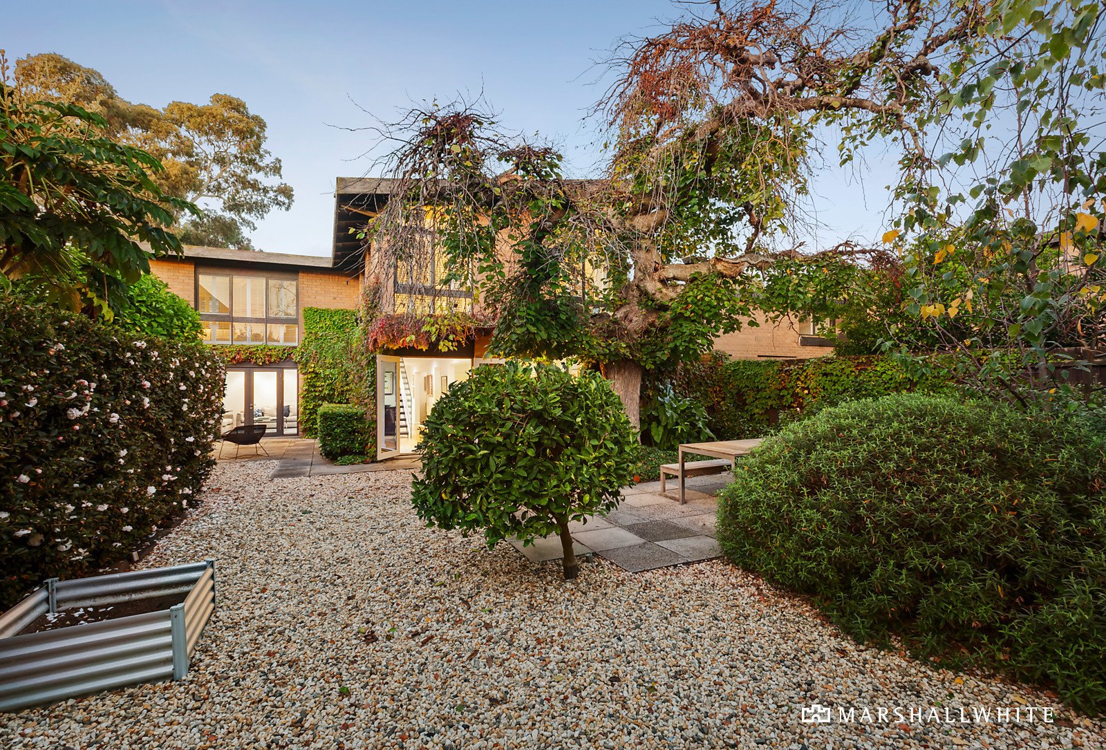 In an exclusive garden enclave landscaped by Ellis Stone at the end of a prized Malvern cul de sac, this brilliantly refurbished c1966 solid brick residence designed by renowned architect Graeme Gunn is set against an utterly breathtaking north-facing private garden backdrop.