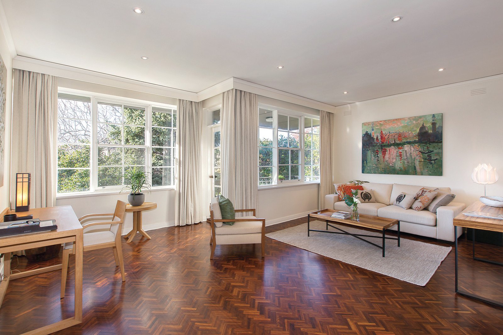 This surprisingly spacious and charming, two bedroom c1970 residence infuses a rich sense of character and warmth to this premium inner-suburban location. Just metres from Toorak Rd with a gorgeous leafy outlook, the generous proportions offer an abundance of natural light and superb parquetry floors. This first floor/top floor home of substance features a highly-prized parking space and a blue ribbon Toorak address.