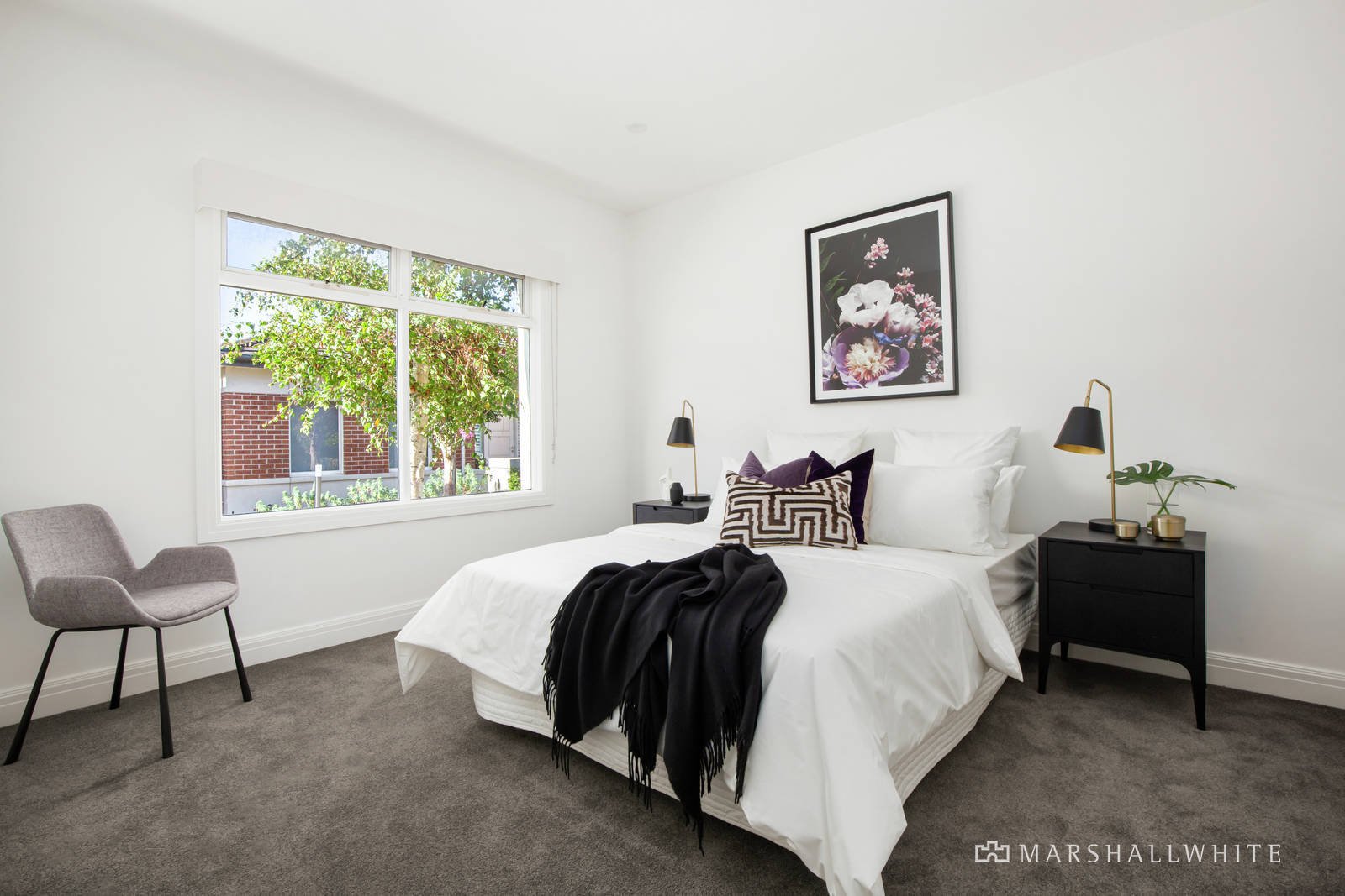 Bathed in streams of natural light, the home's vast open-plan living area is underpinned by a premium kitchen of stone and Bosch appliances whilst French Doors open effortlessly to the easily maintained pleasure of the courtyard. Each with either its own ensuite or semi-ensuite access to the main bathroom, the bedrooms are also appointed with built-in robe storage, plus there is secure intercom entry, central heating, air conditioning and a secure double carport with two lockable storage units.