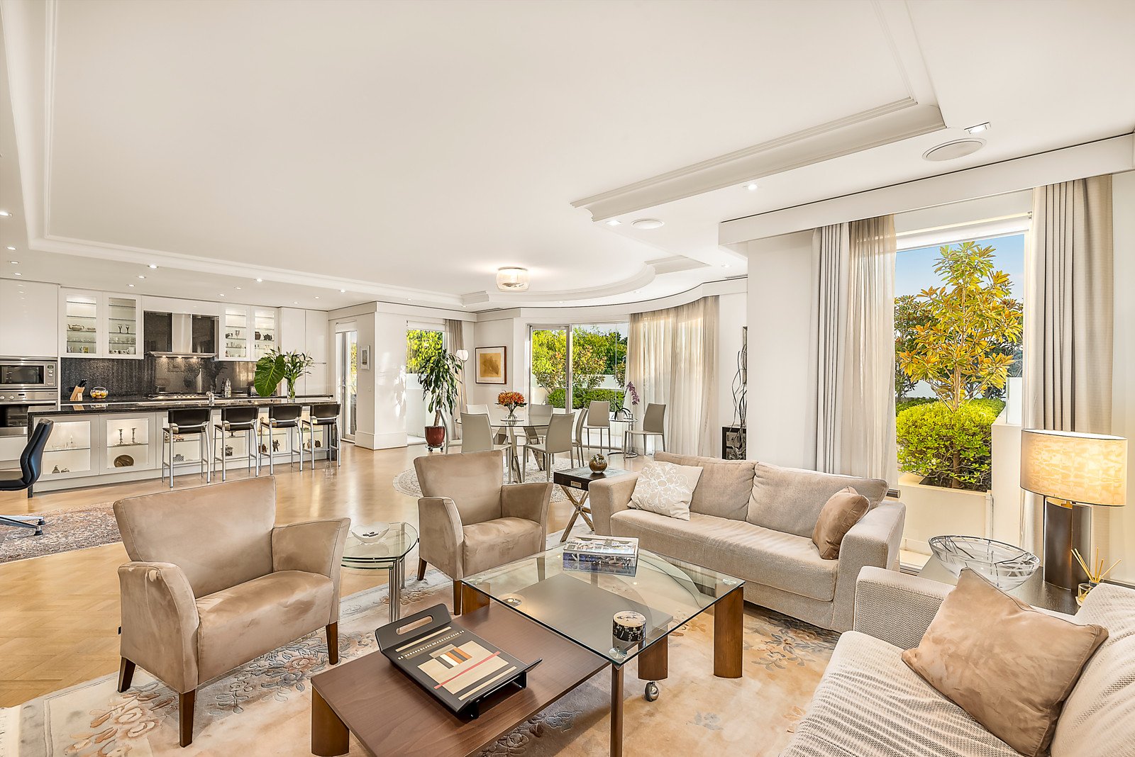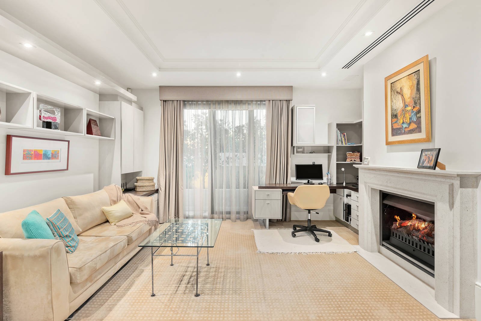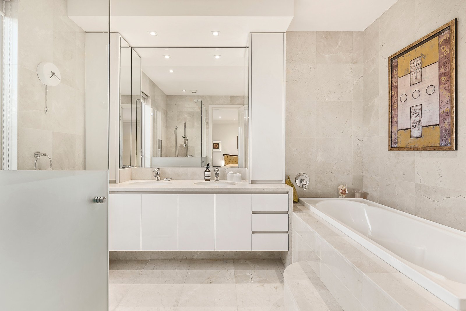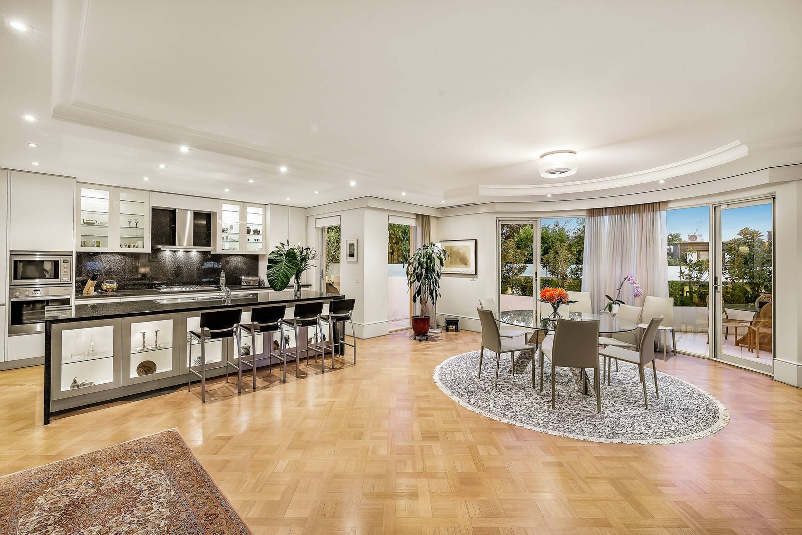 Beneath a circular skylight, oak parquetry floors flow through the wide entrance hall to a beautiful main bedroom with walk in robe and luxurious ensuite, a second bedroom with stylish ensuite and walk in robe and a refined study or third bedroom with gas fireplace. Spectacular in scale, the light-filled open plan living and dining room and a premium kitchen boasting stone benches and Miele appliances opens out to a large private entertaining terrace and surrounding balconies offering city views.