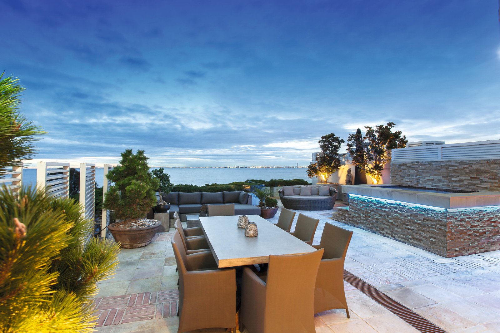 The very spacious master bedroom features an adjoining walk though robe and an ensuite featuring the decorous style of this unique residence. Central to the living/dining and entrance is a magnificent urn water feature, providing a feeling of calmness and serenity. Generous light filled interiors feature antique timbers, natural stone and stylish decor with a magnificent gourmet kitchen, elegant and functional, and flowing through to the large entertaining and relaxation terrace overlooking the water; complete with BBQ facilities, auto sun screening, bespoke spa and spaces designed to capture the essence of Brighton's beachfront lifestyle.
