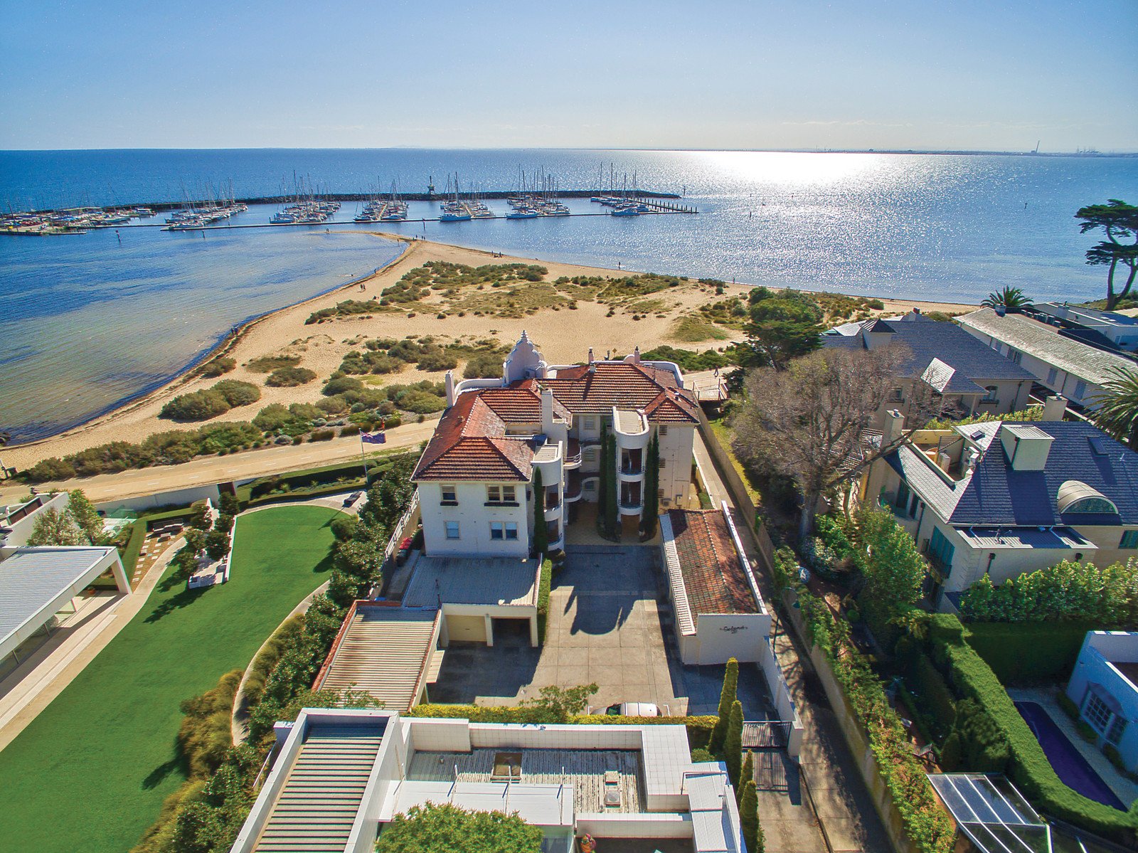 Every day feels like a holiday when you're living in an iconic foreshore apartment, superbly renovated to match Art Deco architecture and new beauty. The uninterrupted views are magnificent, stretching from the city skyline to Royal Brighton Yacht Club marina, pier, baths and across the bay to the You Yangs. Excellent renovation of this corner apartment balances quality and character. Sun-drenched living/dining area has big windows for panoramic bay views, bedrooms are generous and light-filled. Owned by the one owner for 41 years, the like-new style is ready for luxe living. New-look kitchen has Fisher & Paykel appliances, a pullout pantry and glass splashback, the bathroom is all-white and light, and two bedrooms are generous and updated. Entry is via remote-control gate, there's a garage, your own beachfront boatshed, and off-street guest parking. Easy walk to Church Street and waterfront cafes, and opposite the leash-free dog beach. Golden Mile address and landmark building, ready for an exclusive lifestyle.
