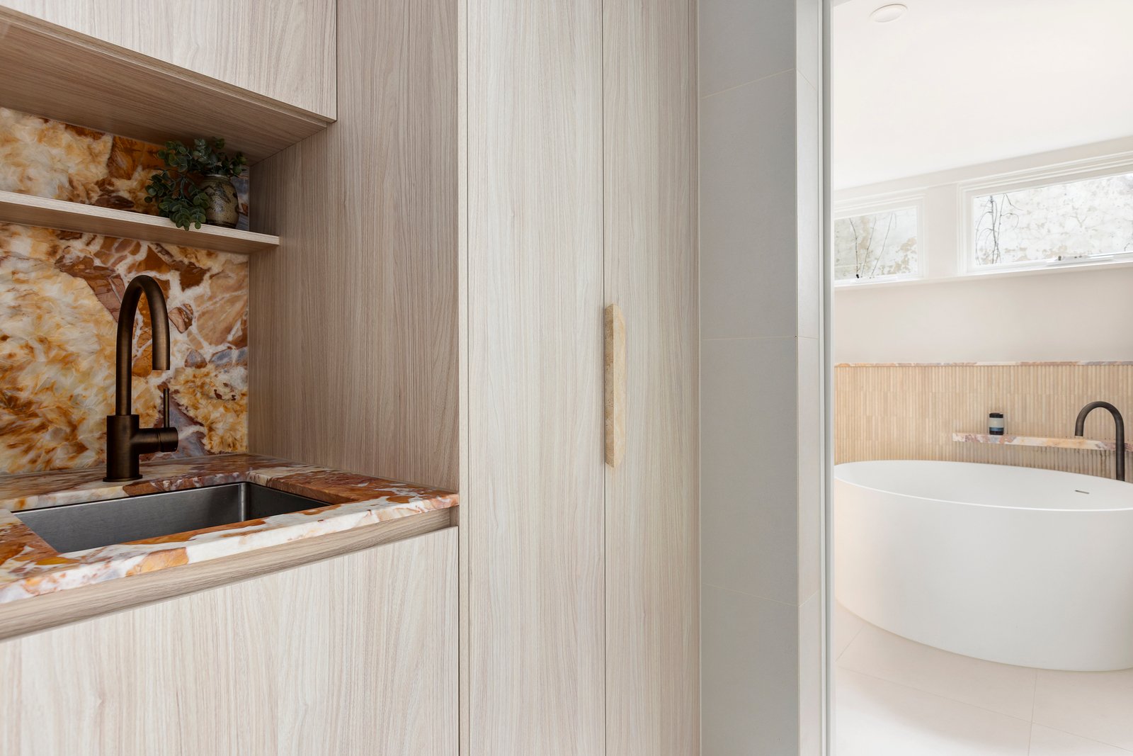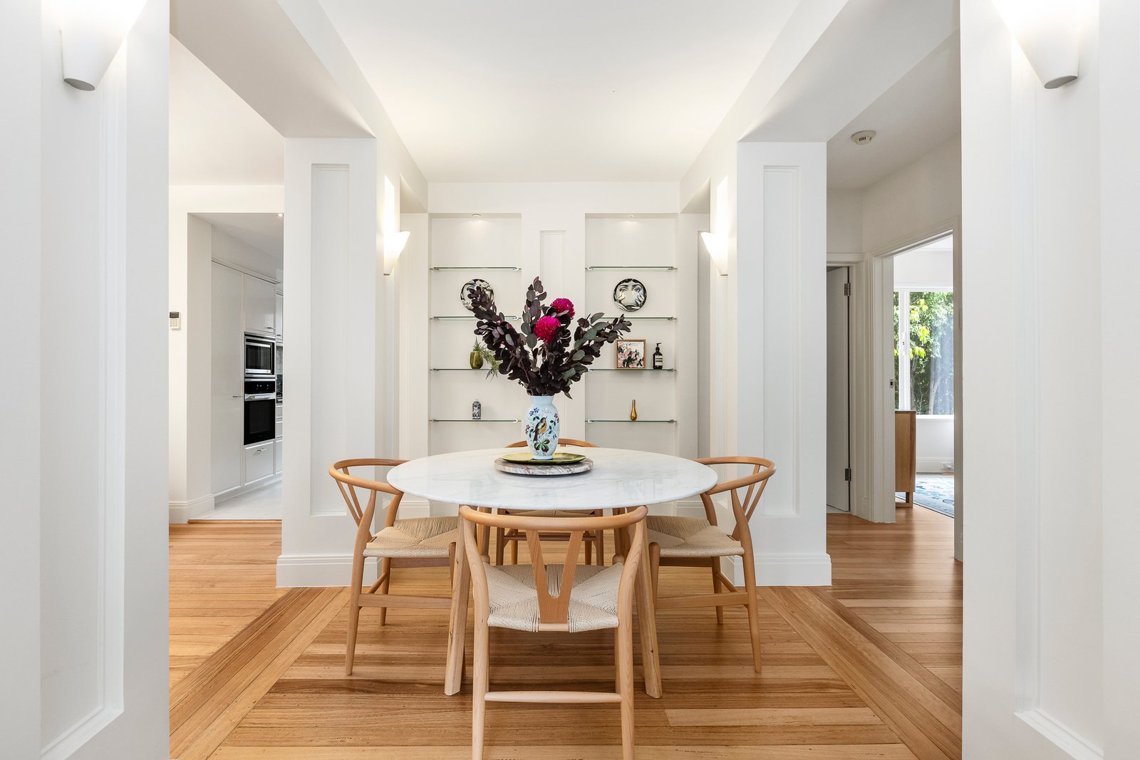 Timelessly elegant with granite benchtops and plenty of cabinetry, the kitchen / meals also reveals a suite of European appliances that include Smeg cooking and a new Miele pyrolytic air-fryer oven, all of which overlooks semi-attached dining and a large lounge where the northern light is glorious. Securely accessed via intercom entry, the apartment also features particularly spacious bedrooms with mirrored built-in robes – and a sun drenched terrace off the primary suite – as well as freshly sanded original hardwood floors, new reverse cycle heating / air conditioning, new curtains and a proudly renovated showpiece bathroom and laundry - crafted by the award-winning GIA Renovations - where full Italian tiling is complemented by Blue Patagonia Marble surfaces, a fluted shower screen, circular bathtub and sub-vanity lighting as well as a handblown glass mirror light to completely wow the senses.