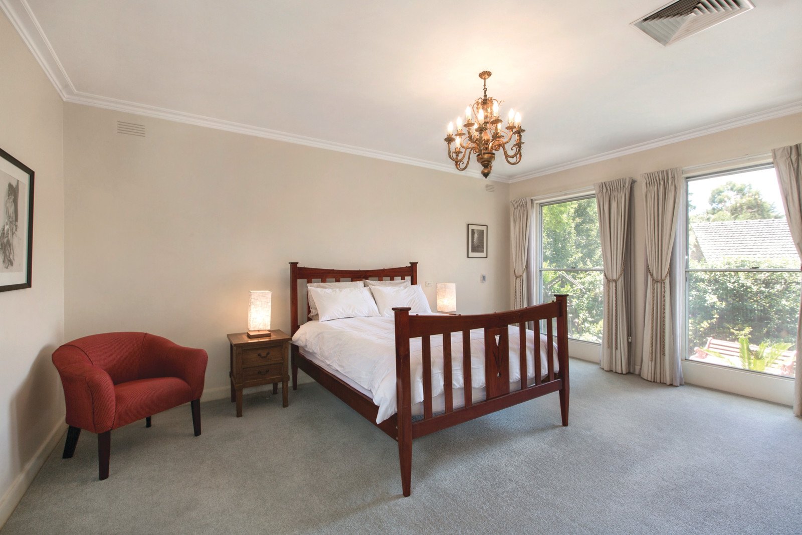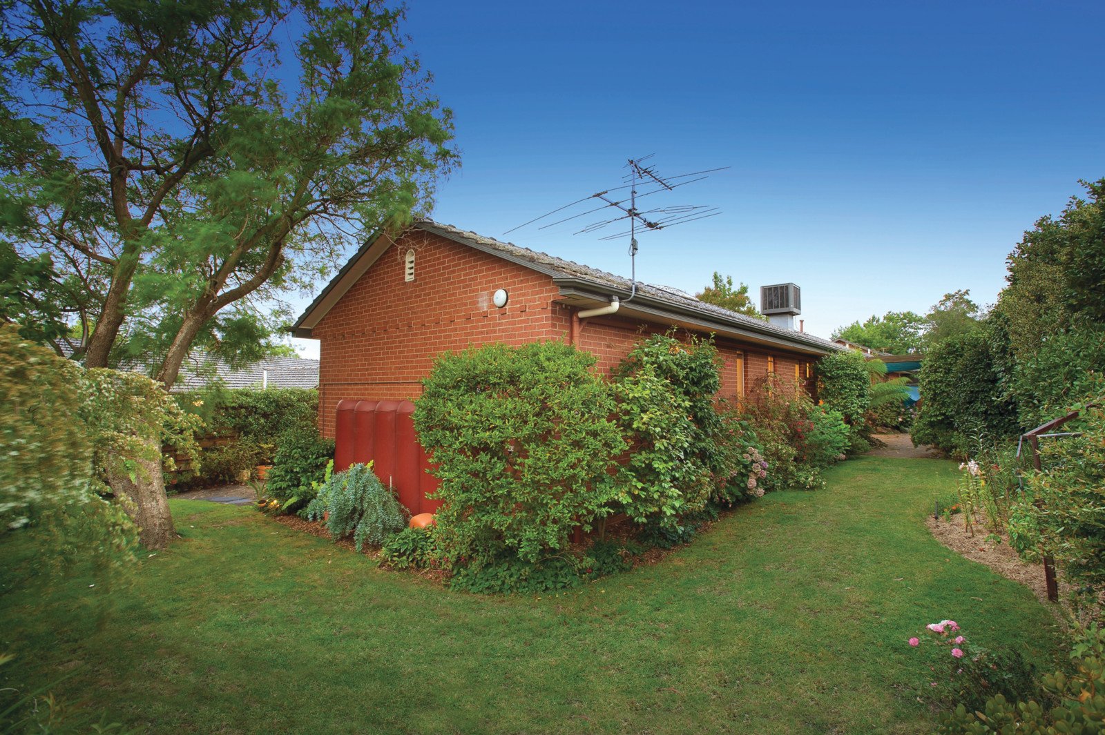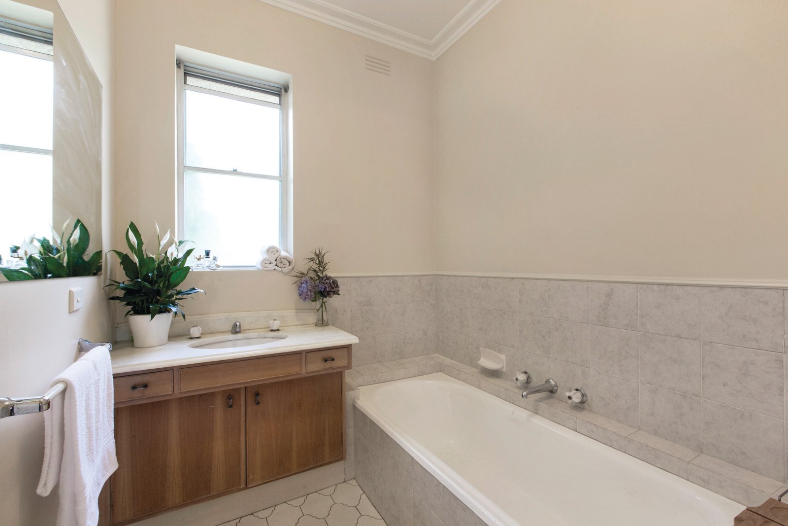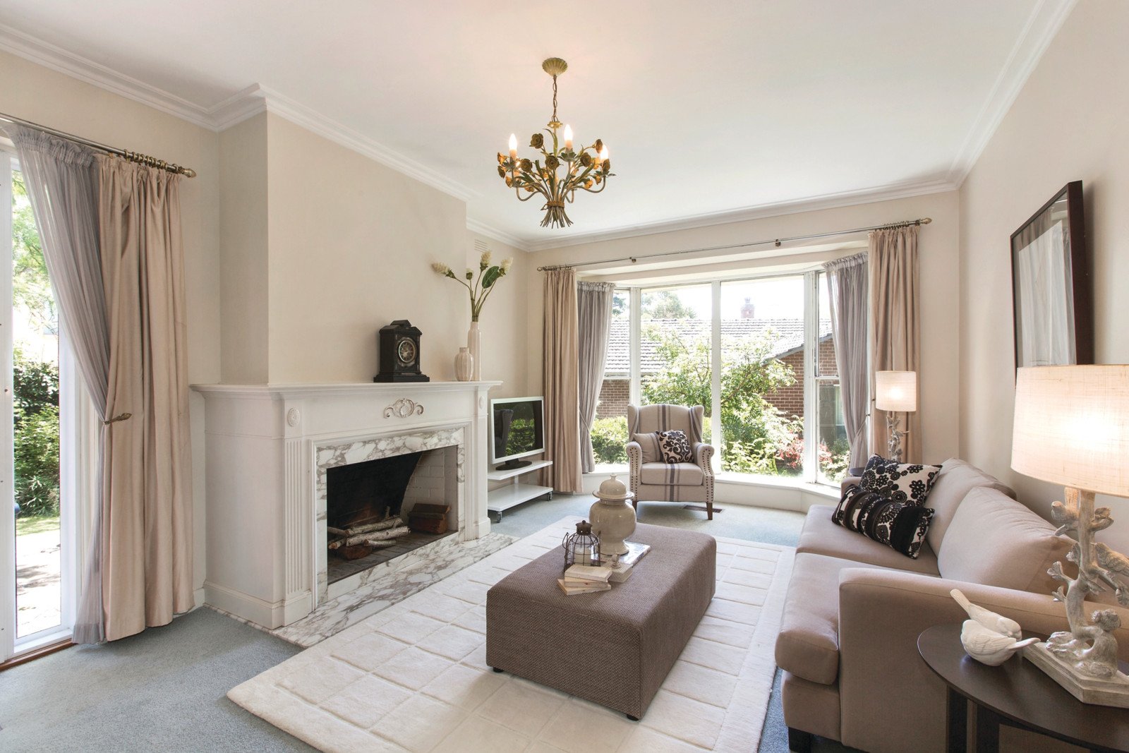 Wide-set to allow maximum flow of light and space, features include elegant marble tiled entry, north-facing living room (marble fireplace and bay window), formal dining room opening to garden, updated separate kitchen, 3 bedrooms (Main bedroom with dressing room and en suite), bathroom, laundry, ducted heating and air conditioning, ducted vacuum, and double remote garage with internal entry.