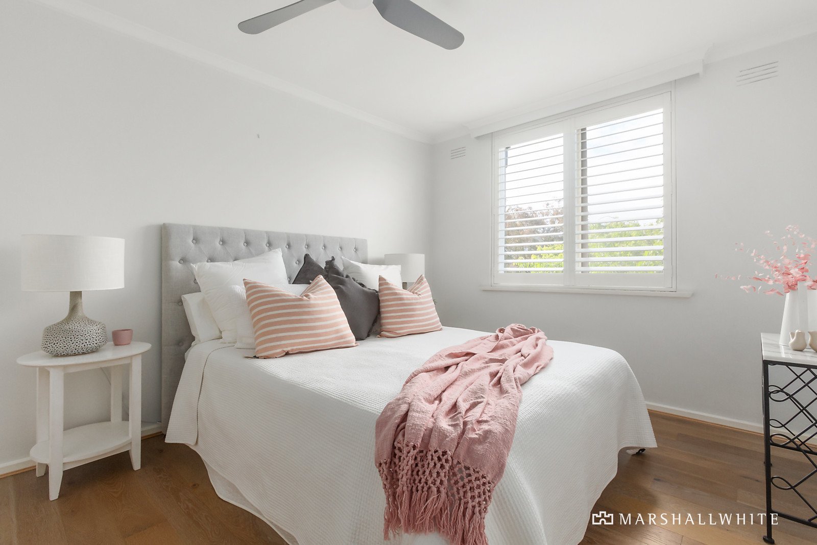 The crisp white interior is a sheer delight to enter with more space than most of the newer apartments and features big windows with Plantation shutters and engineered timber floors. An entrance hall flows past a sleek new kitchen with 2pac cabinets, granite bench-tops, Bosch stove and Ariston stainless steel dishwasher to a spacious living and dining room with leafy outlooks to a magnificent pair of Ghost gum trees and opening to a front balcony. Complemented by three bedrooms all with built-in robes plus a sparkling bathroom/laundry, powder room and storeroom. Other features Include security intercom entry, R/C air conditioner (living), overhead fans in the bedrooms, quality fixtures and fittings and rear off-street parking.