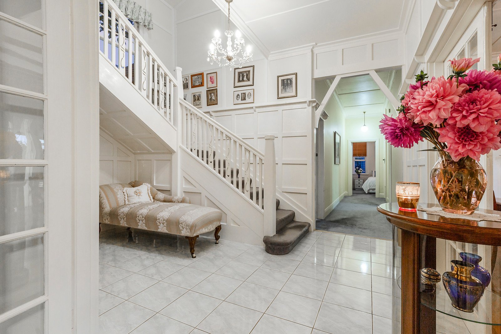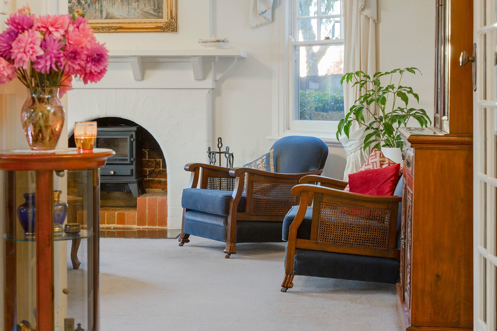 A tiled entrance foyer with chandelier welcomes you to an elegant, carpeted formal lounge with original brick fireplace, flowing through to a dining room, casual meals area and central timber kitchen with walk-in pantry, Westinghouse dishwasher and Neff appliances. This living zone connects with ease to an inviting veranda overlooking the pool and picture-perfect northwest facing gardens; sit back and enjoy refreshing breezes and warm summer evenings.