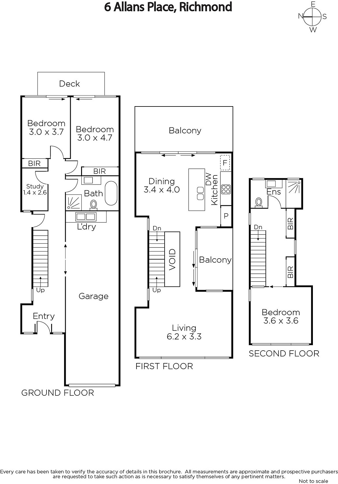 The ground floor feature heated polished concrete floors, two bedrooms opening to a deck and landscaped garden lined with ornamental trees, stylish fully-tiled bathroom and study. Beautiful timber stairs lead to a superbly equipped Euro kitchen with stainless steel double oven, integrated dishwasher, fridge/freezer and Corian bench tops with open-plan dining and living areas around a central light-well courtyard. Whilst a main bedroom with BIRs, ensuite and front tree-top views is situated on level three. Other features include external electric louvre blinds, Australian pale hardwood floorboards, hydronic heating, R/C air-conditioners, OFP, rain water tank, CCTV, solar power, remote tandem garage with laundry & direct internal access.