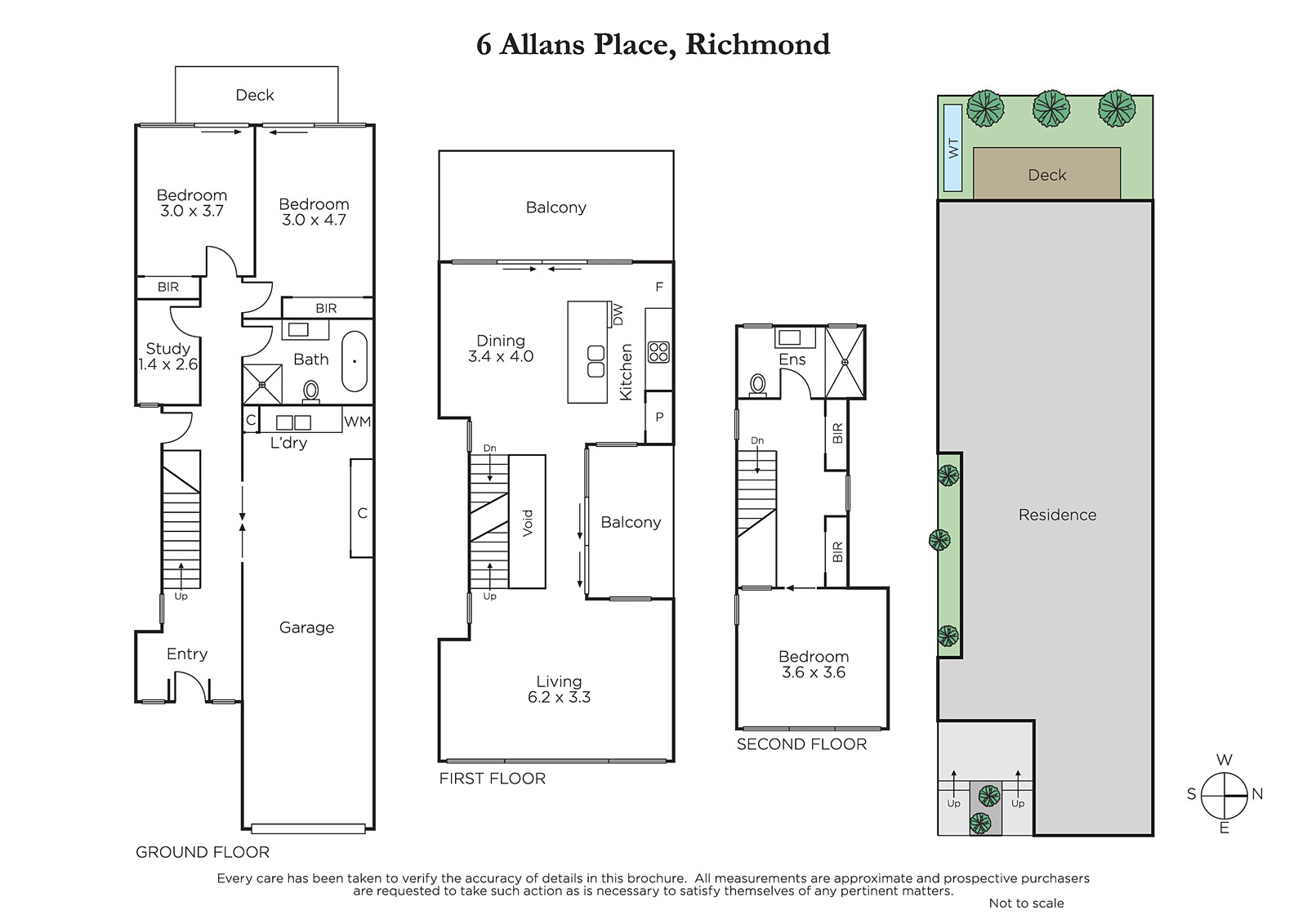 The ground floor feature heated polished concrete floors, two bedrooms opening to a deck and landscaped garden lined with ornamental trees, stylish fully-tiled bathroom and study. Beautiful timber stairs lead to a superbly equipped Euro kitchen with stainless steel double oven, integrated dishwasher, fridge/freezer and Corian bench tops with open-plan dining and living areas around a central light-well courtyard. Whilst a main bedroom with BIRs, ensuite and front tree-top views is situated on level three. Other features include external electric louvre blinds, Australian pale hardwood floorboards, hydronic heating, R/C air-conditioners, OFP, rain water tank, CCTV, solar power, remote tandem garage with laundry & direct internal access.