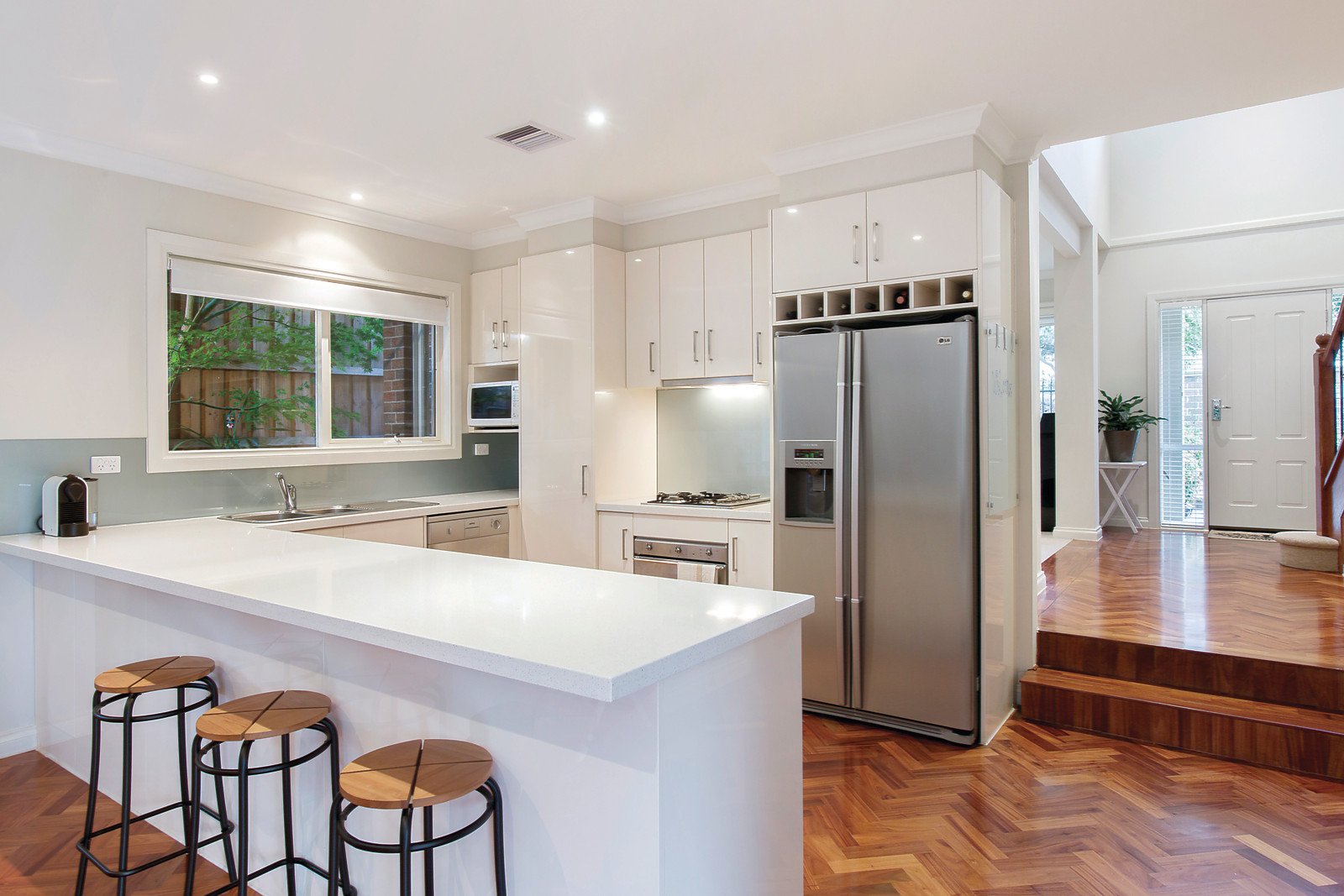 The imposing parquetry entrance hall beneath a soaring void introduces a refined sitting room. The gourmet kitchen featuring Smeg appliances and stone benches and a generous living and dining room open to a private paved north-facing landscaped garden with entertaining deck. Light-filled accommodation upstairs comprises a gorgeous main bedroom with stylish en-suite and walk in robe, two additional double bedrooms with built in robes and a chic central bathroom.