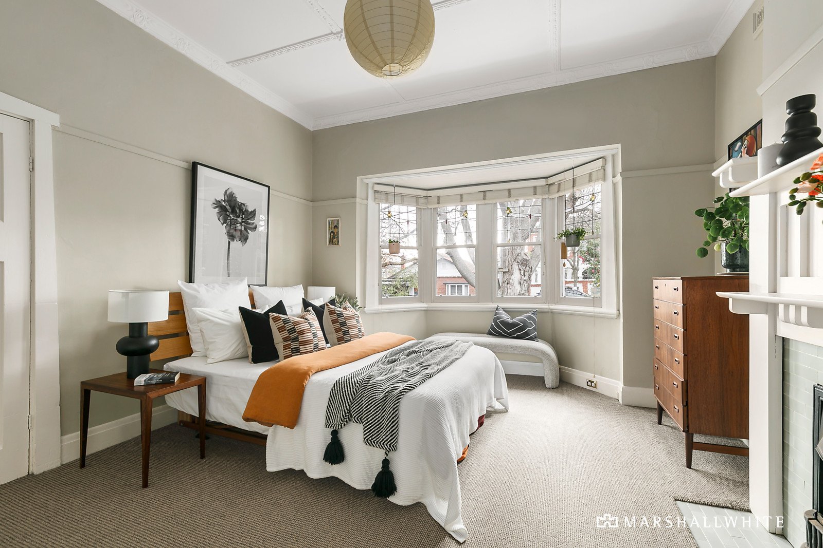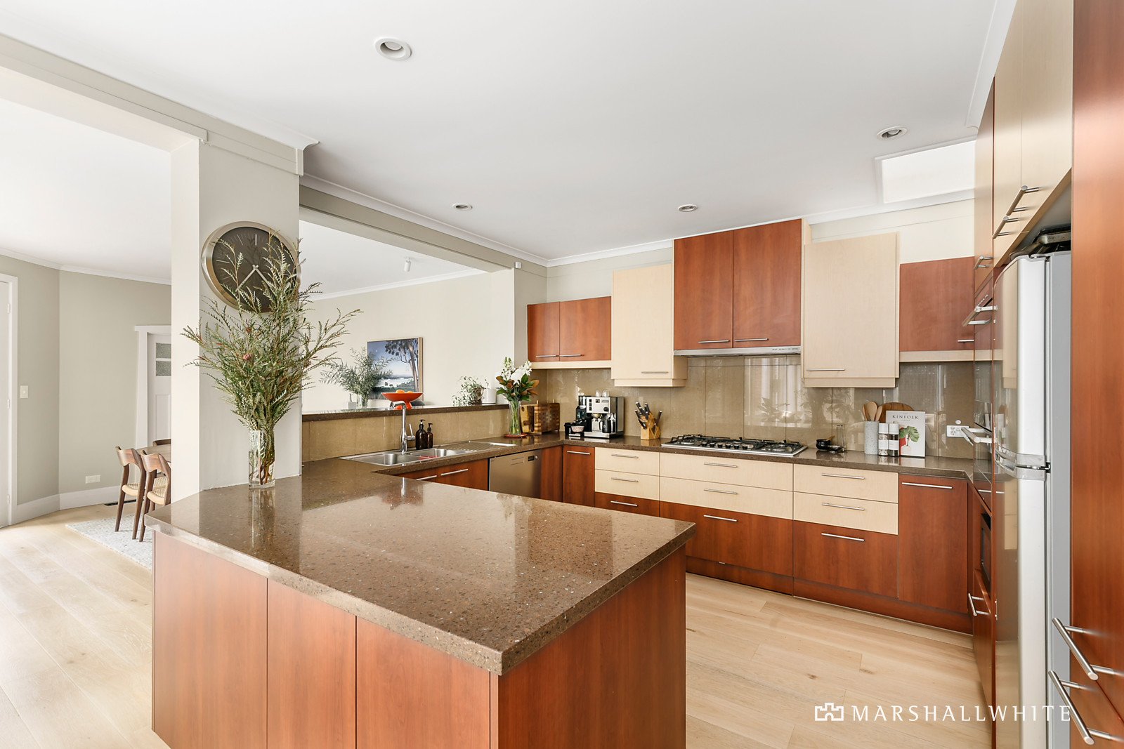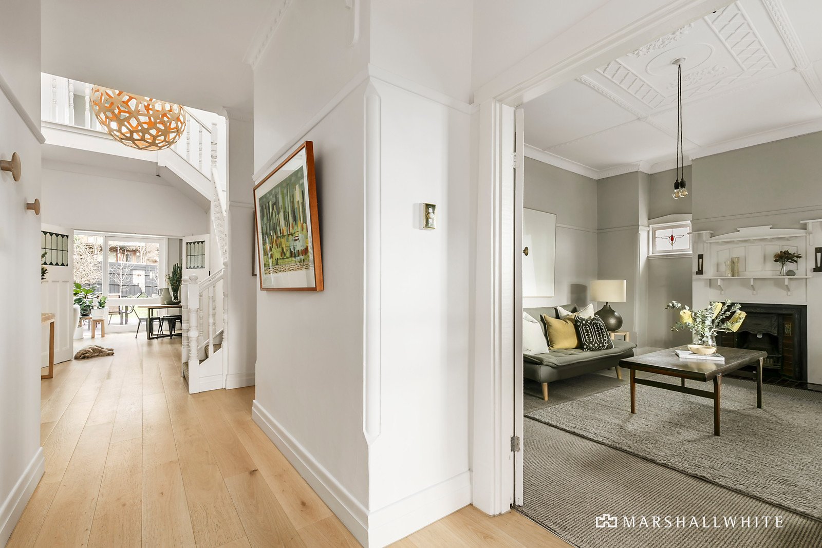 Evocative period features including ornate ceilings and leadlight windows are paired with premium oak floors through the wide central hall which introduces an elegant sitting room with fireplace and gracious formal dining room (possible 5th bedroom) also with a fireplace. The oak floors continue through the expansive family living and casual meal rooms that surround the gourmet stone kitchen. Both rooms open out to a large deck and the glorious private northeast facing garden. Overlooking the landscaped front garden through a bay window, the beautiful main bedroom includes ornate ceiling, fireplace, walk in robe and en suite. A superb children's zone upstairs comprises two double bedrooms with robes, a stylish bathroom and a spacious retreat with ample storage. There is also a versatile home office or 4th bedroom downstairs.