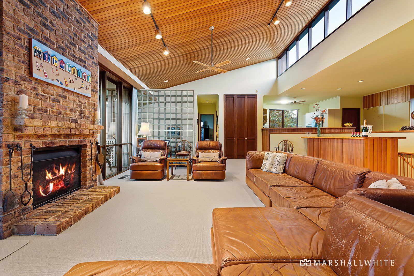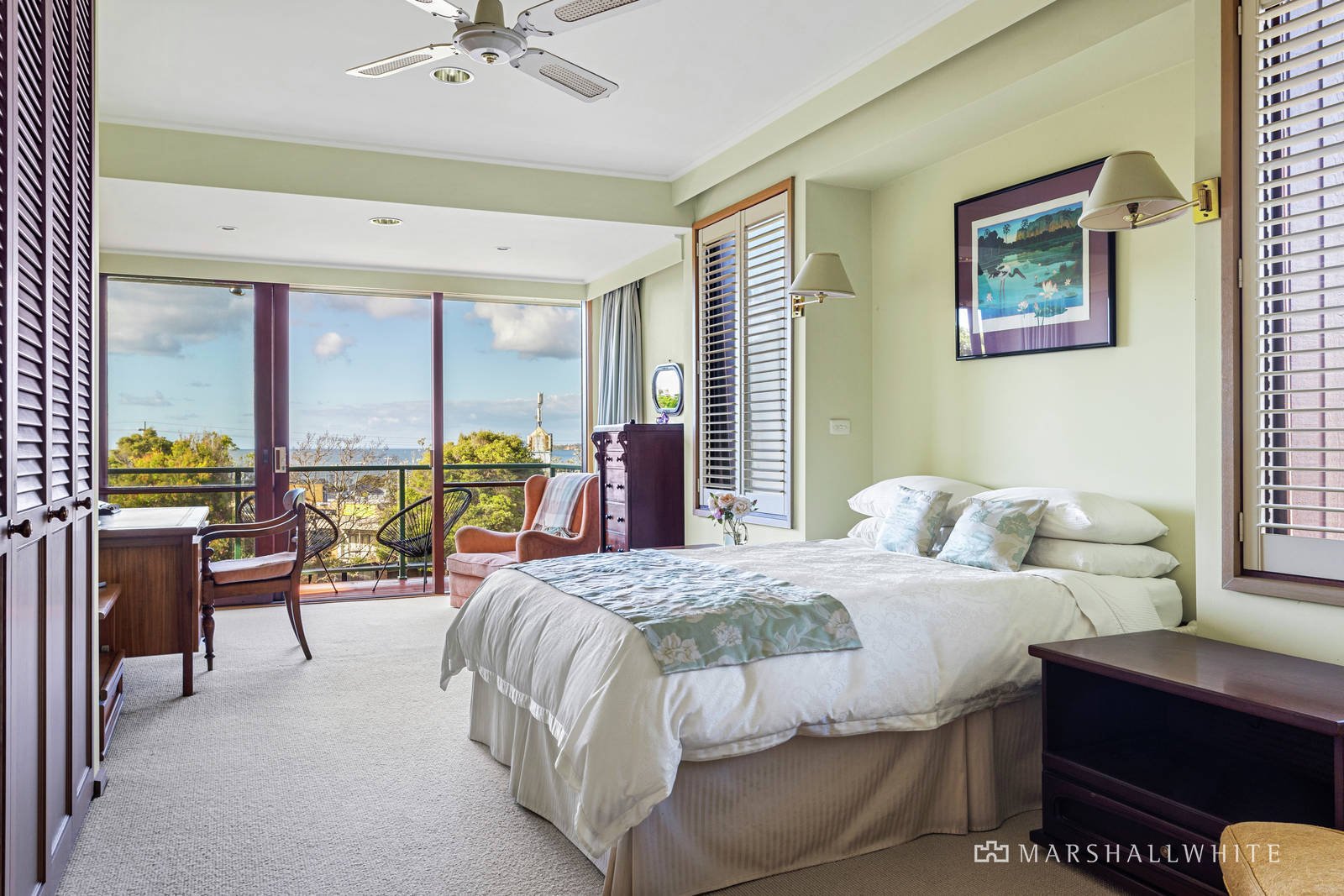 Privately set behind automated gates, at the end of a long, sweeping driveway, the architect designed, custom built '80s modernist home is on the market for the first time. The split-level layout invites relaxed family living and effortless guest-hosting, with vast living spaces and zoned accommodation wings. Outstanding interior features include soaring ceilings lined with mountain ash, banks of highlight windows, a glass-tile feature wall and parquetry flooring. Custom joinery includes a banquette window seat/dining alcove, and a centrally positioned Bay-facing wet-bar overseeing the main open plan living space with wood fireplace, surrounded by glass sliding doors that open out to the expansive, wrap-around alfresco deck with automated awnings. The commercial-sized central kitchen has stone benchtops, Gaggenau appliances and a large walk-in pantry/appliance cupboard. There is another large second living area with built in bookshelves and cabinetry, and this leads to two 'dormitory' size bedrooms with built in robes, and two bathrooms. The eastern wing of the home includes a lovely guest bedroom with views, known as 'the honeymoon suite', as well as the beautiful master suite with 'the best views in the house', private balcony access and ensuite bathroom with spa bath. Includes gas ducted heating, ducted vacuum, ceiling fans, and 2-3 car under-house remote operated garage with powder room, wine cellar, and huge storage/utility room with chute access from the bar. There is also a double carport, and masses of off-street parking.