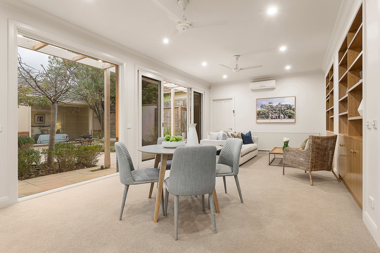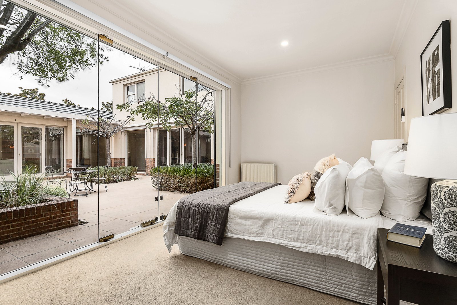 The main bedroom also opens to the courtyard and is appointed with walk in robe and ensuite. Two further bedrooms with built in robes and a second bathroom are situated upstairs as well as a study nook.