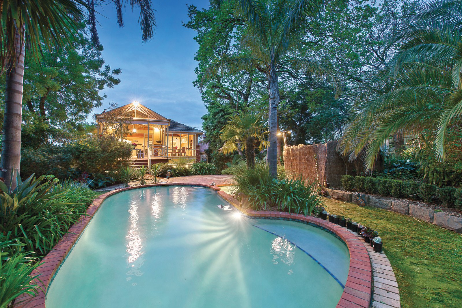 Gracing a magnificent deep garden allotment of 1,735sqm approx. and originally built to exacting standards by a craftsman builder the home features return verandahs with the lower level introduced by an impressive atrium with second level ceilings and OFP leading to a study area, four bedrooms, main with ensuite, two with student desks plus a family bathroom with spa, large laundry and rumpus room. Whilst the upper level has a powder room and is highlighted by expansive formal/informal living and dining spaces - the formal dining/lounge room has a marble OFP, concealed bar and French doors opening to the upper verandah with panoramic northern views - an entertainers delight in all seasons. Whilst the family room has a coved timber lined ceiling with sky windows and incorporates a timber kitchen with emporite finish and WIP, DeLonghi stainless steel stove and two-drawer dishwasher flowing to a covered deck with blinds overlooking the pool and lush garden complete with gazebo and cubby house - perfect for year round relaxation and entertaining. Other features include room for a court if desired (STCA), alarm, ducted heating, evaporative cooling, garden irrigation, double carport and garage or workshop/storage.