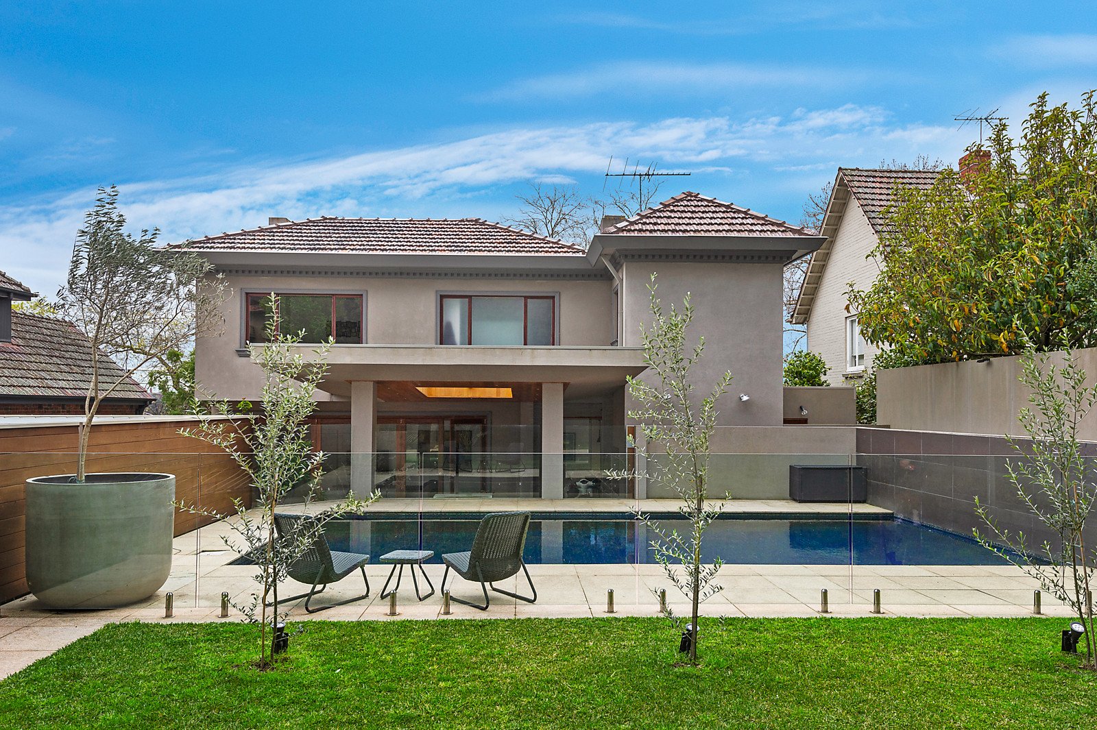 Located in the leafy Riverside Estate, this magnificent double storey l930's solid brick family home offers you timeless elegance and contemporary sophistication, enhanced by superbly zoned generous family spaces, pool surrounds, mature trees and a private rear garden.