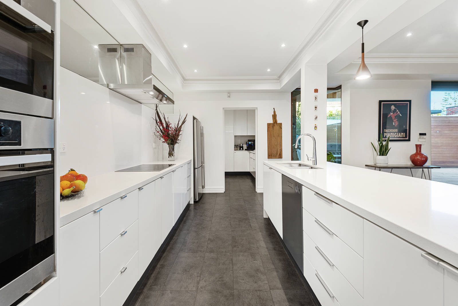 Set on an elevated 836sqm block on a tree-lined street and privately hemmed by a lush fence line, experience superior quality and exceptional design in this totally transformed residence as you walk through the entrance to reveal a light-filled foyer and a striking glass door leading to an underground cellar.