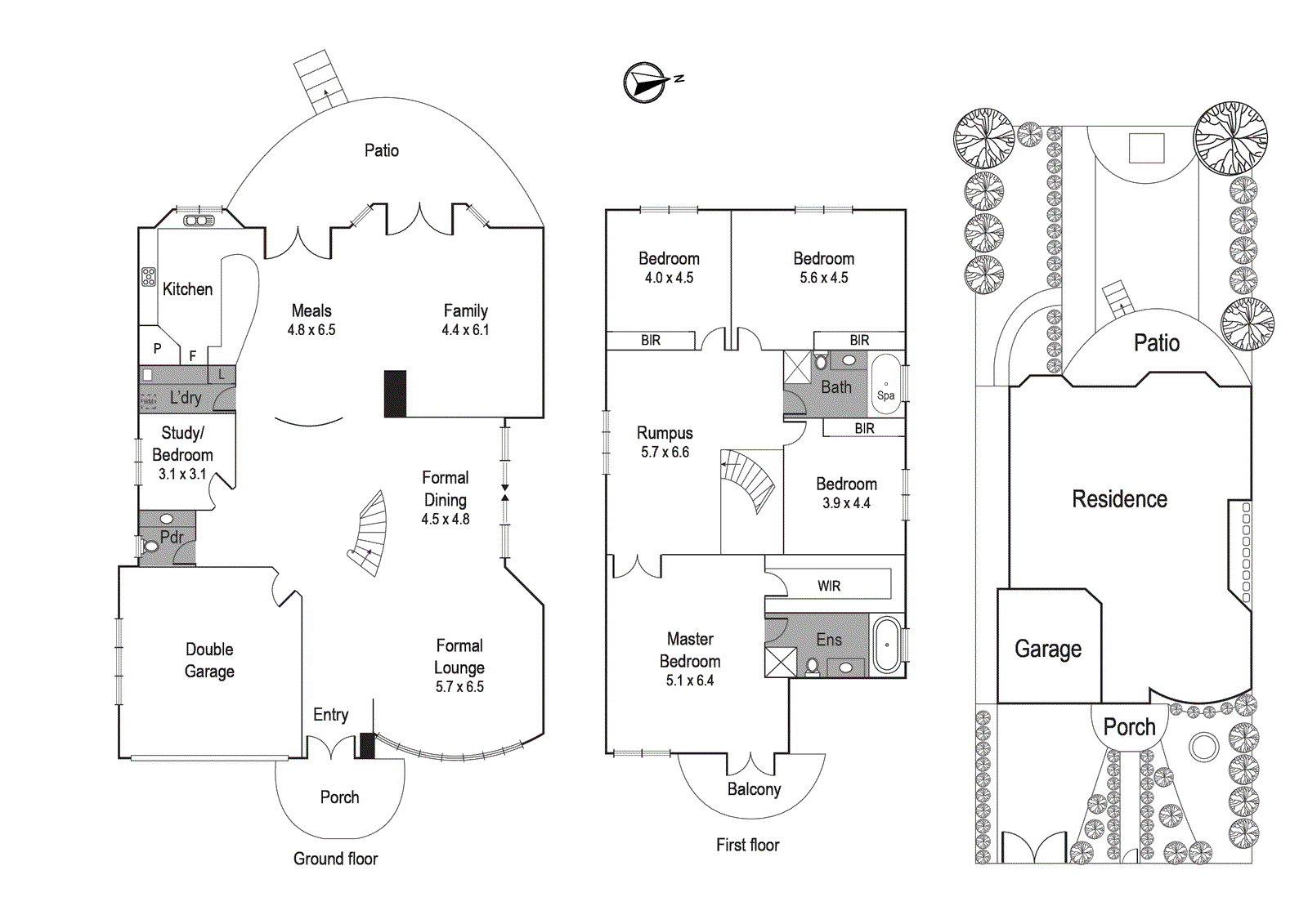 With a sweeping staircase as a centrepiece, the grand lounge with full-height and full-width glazing sits beside the large dining room. At the rear, the large size of the gourmet granite kitchen is perfect for parties, while the open meals and family room seamlessly join the covered alfresco, paved BBQ area and shaded decking.
