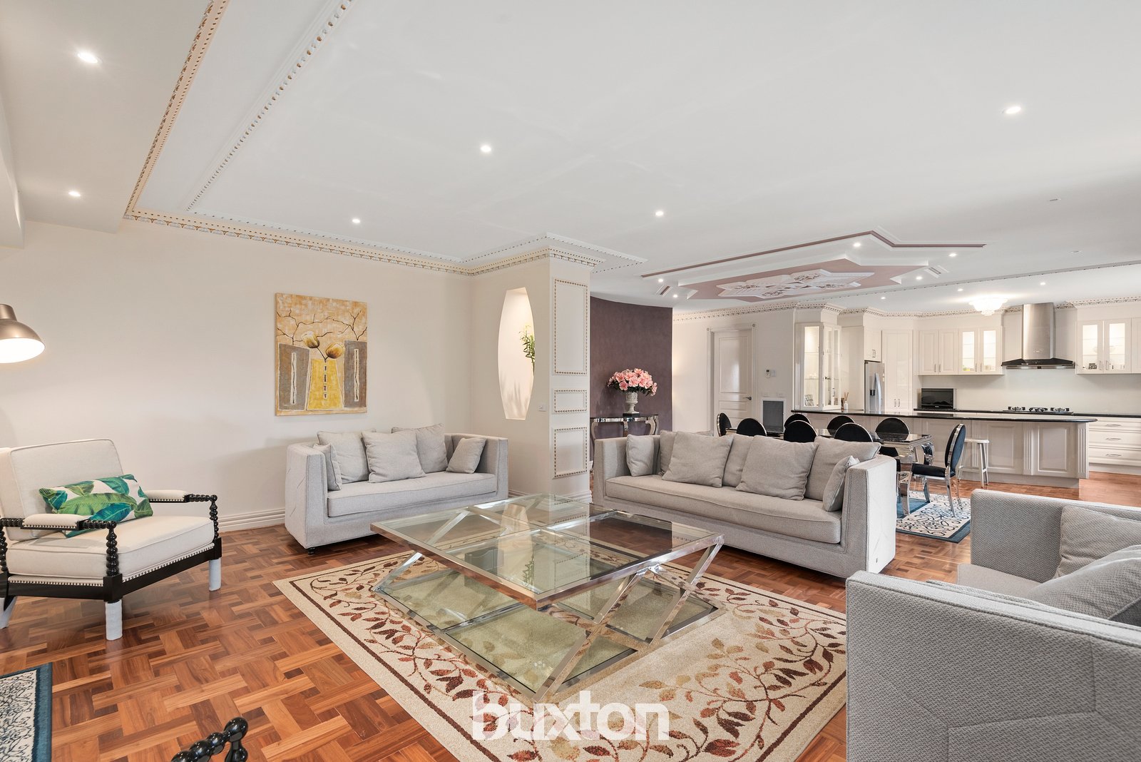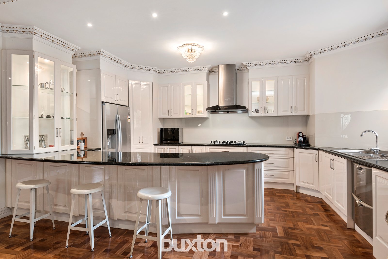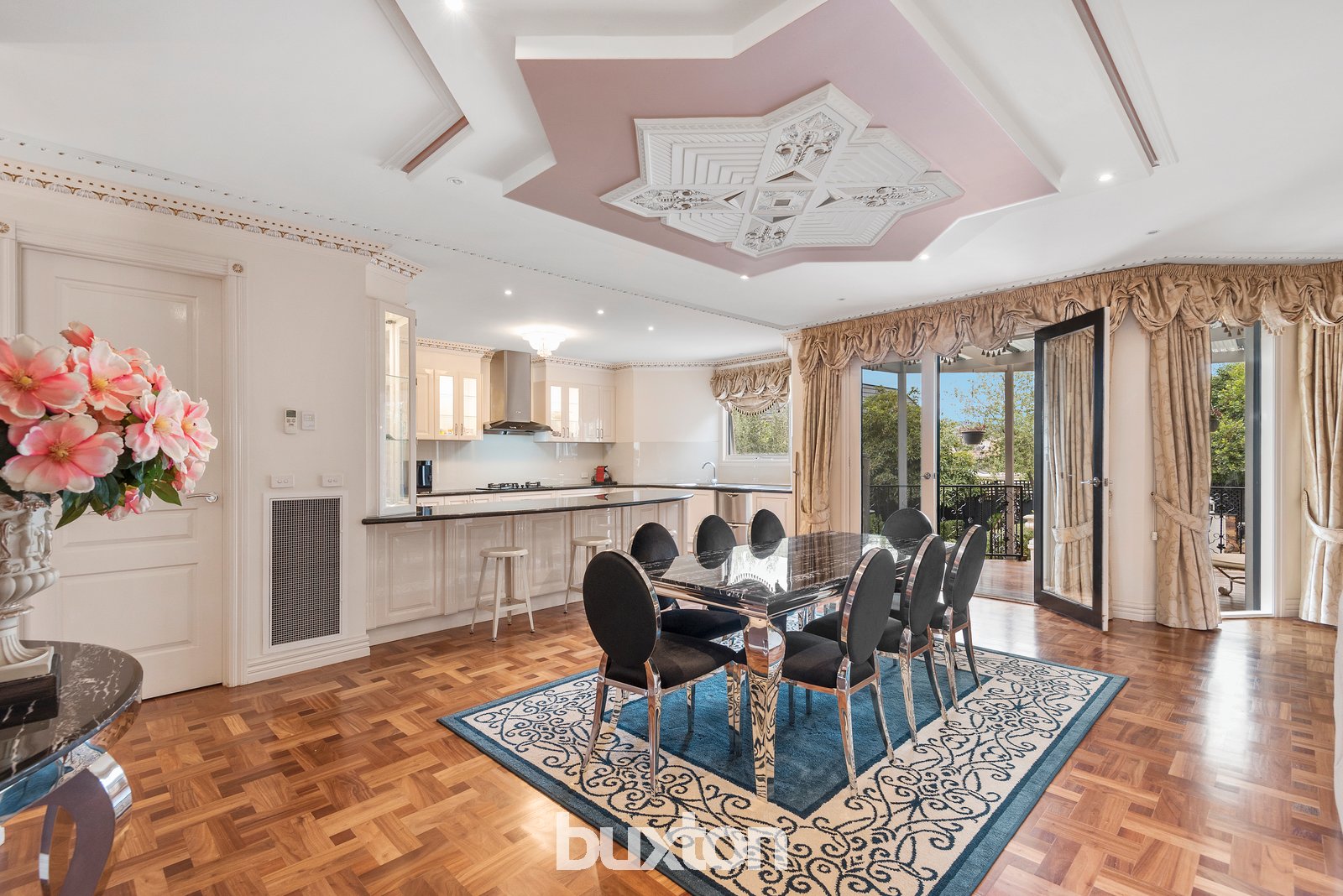 Unforgettable style and inspiring spaces are the hallmarks of this prestigious five bedroom residence. A flawless indoor/outdoor entertainer, the ornate, hand-painted ceiling roses and cornices combine with chandeliers and timber parquet floors to achieve a luxurious experience.
