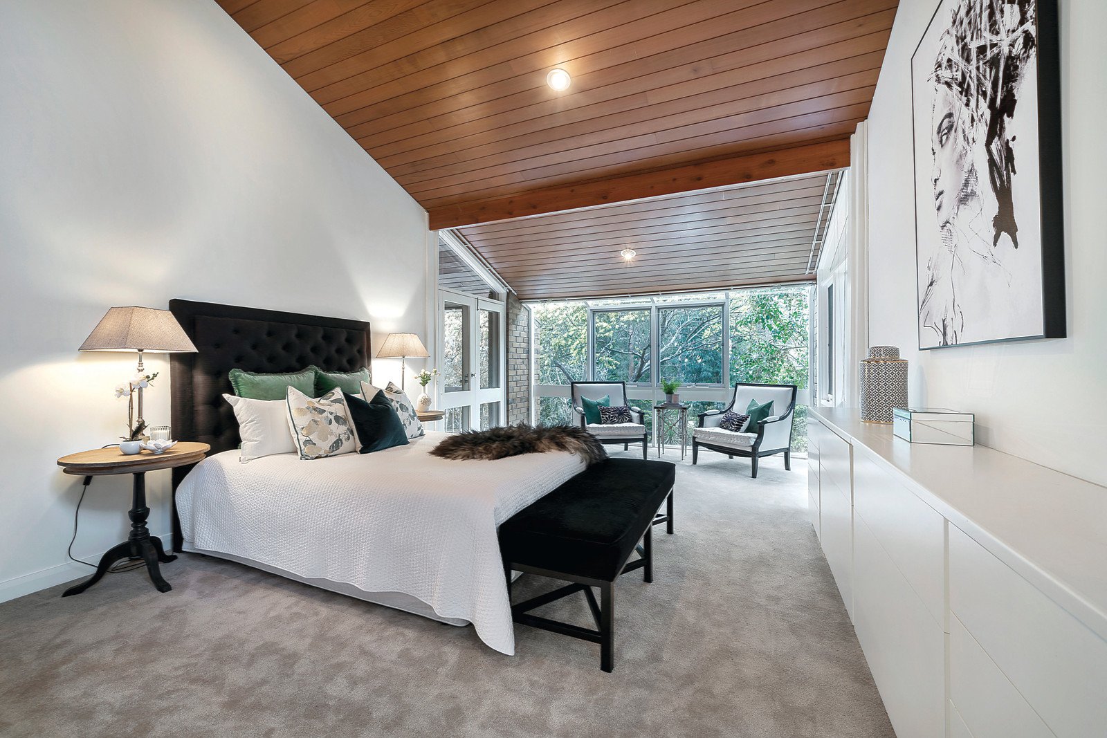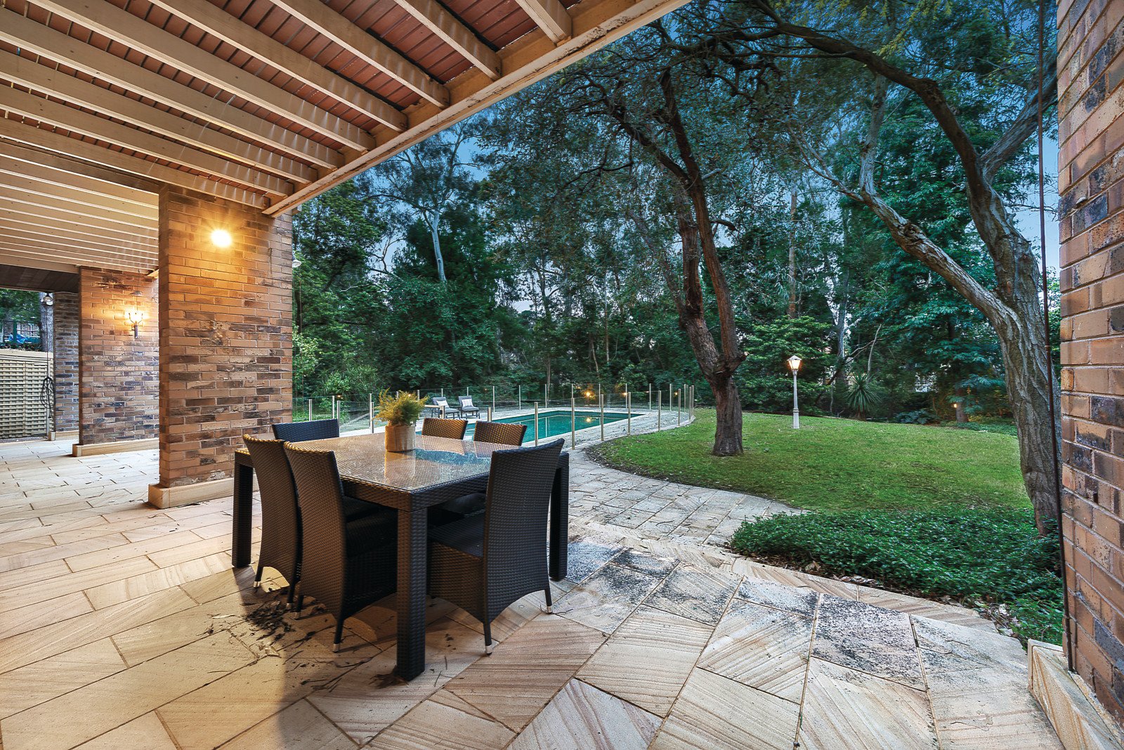 The refurbished interior features large windows with an abundance of natural light, garden vistas, outlook to pool with expansive outdoor entertaining area. The ground level comprises kitchen, adjoining laundry and pool bathroom, study, rumpus room/retreat, three bedrooms and two further bathrooms with separate WC. A sky lit staircase leads to the upper level featuring vaulted ceilings, a huge formal living and dining room, timber/Euro appointed kitchen, informal living and dining, two further bedrooms, main with WIRs and ensuite; plus a powder room and front and rear verandahs. Other features include intercom, new carpets, drive-in and drive-out circular driveway to 4-car garage with rear cul-de-sac access.