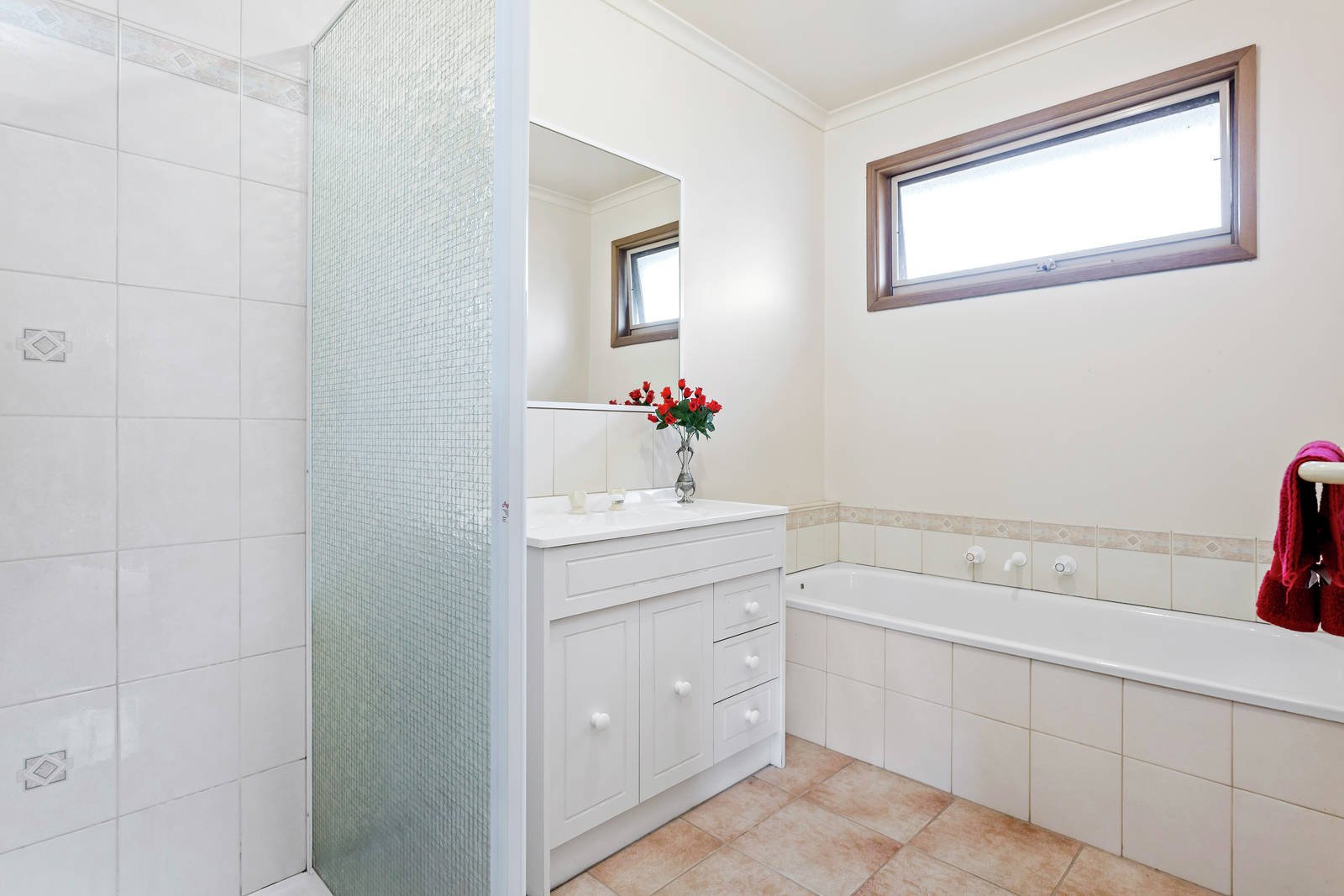 The master is zoned privately to the front of the home comprising a walk-in robe and ensuite, complemented by two equally-proportioned robed bedrooms at the rear, one with reverse cycle air-conditioner, both serviced by a nearby family bathroom with separate WC.