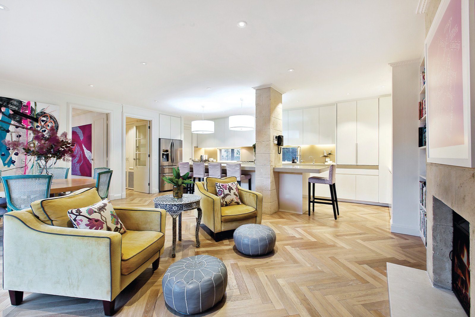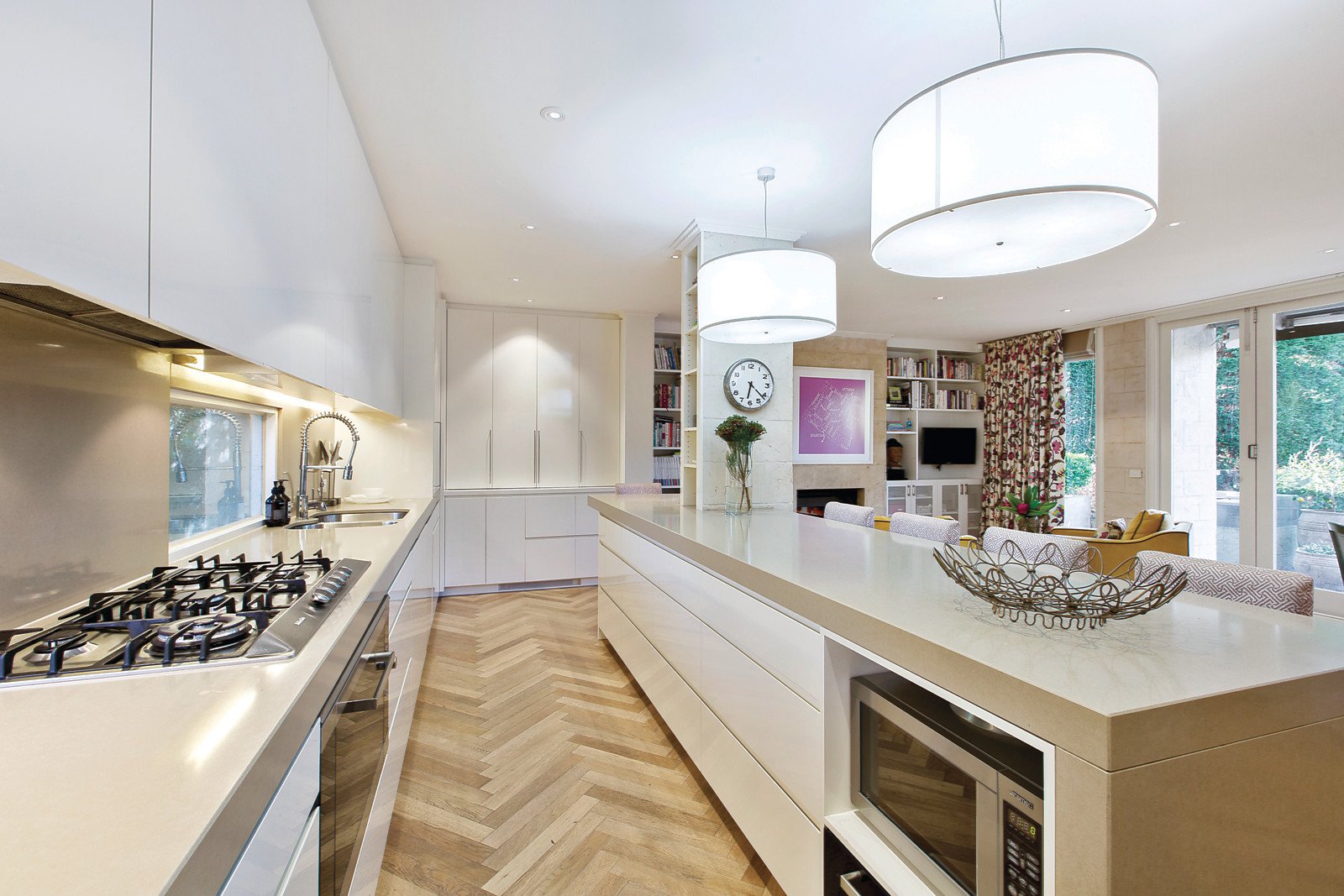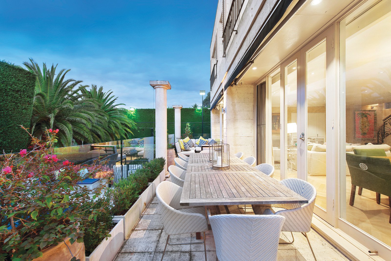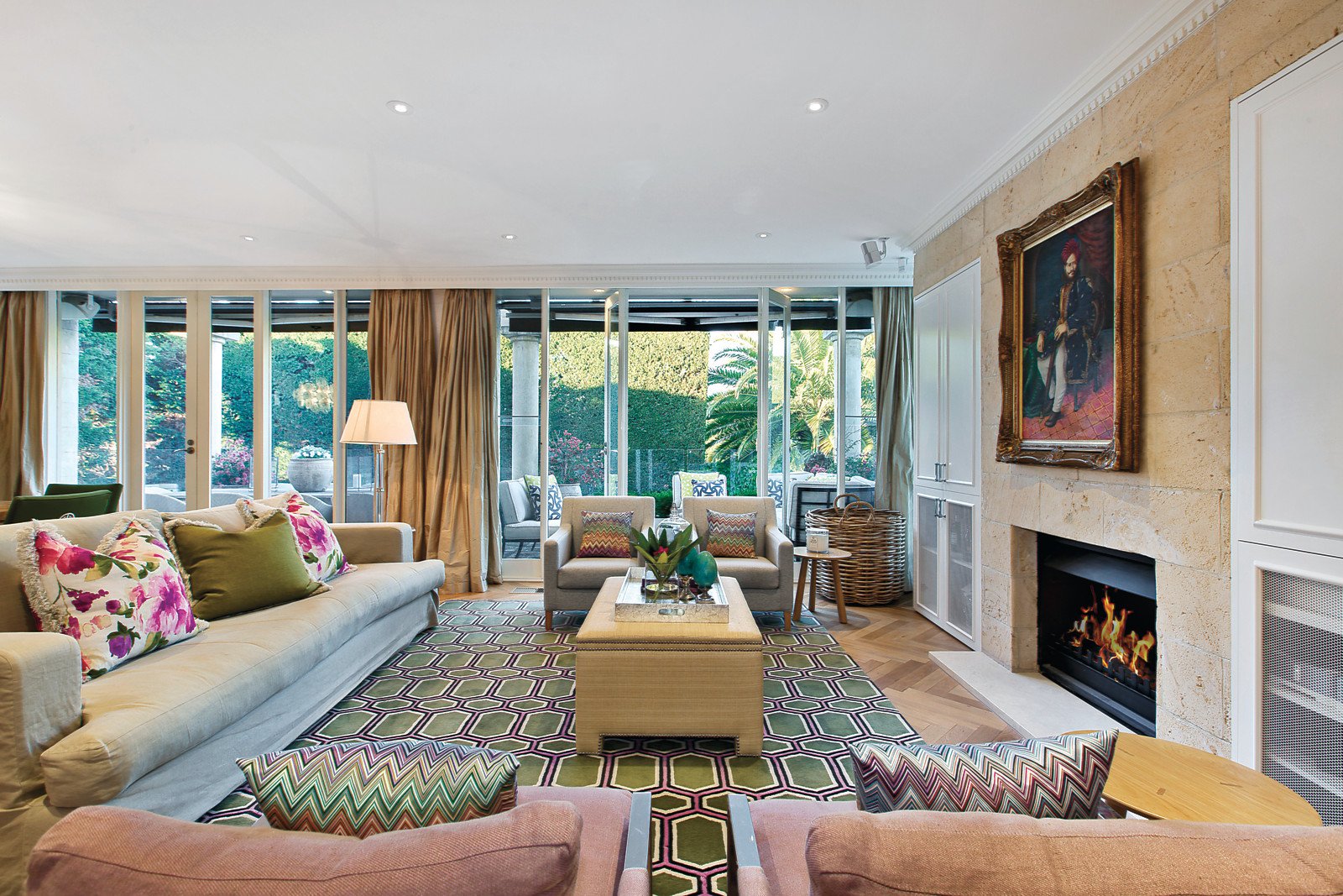 Distinguished by three breathtaking living zones, this abode encompasses spectacular formal and family living zones, with dual fireplaces and beautiful custom fitted storage. Full height glass sliding doors offer unfettered views of the unmatched shaded alfresco terrace and pristine lap pool with spa. The spacious limestone terrace encapsulates an ideal ambience for relaxation, alfresco dining and lavish entertaining. A third living space acts as a sizeable rumpus room or study with direct external access to an impressive outdoor sports field that can be used for soccer, basketball or tennis. Luxurious living is complemented by an epicurean Miele kitchen featuring sleek stone benchtops, floor-to-ceiling cabinetry and a caterer's pantry. Immaculately appointed interiors are elegantly enhanced by honey coloured limestone and recycled oak parquetry flooring as well as granite, marble and limestone benchtops.