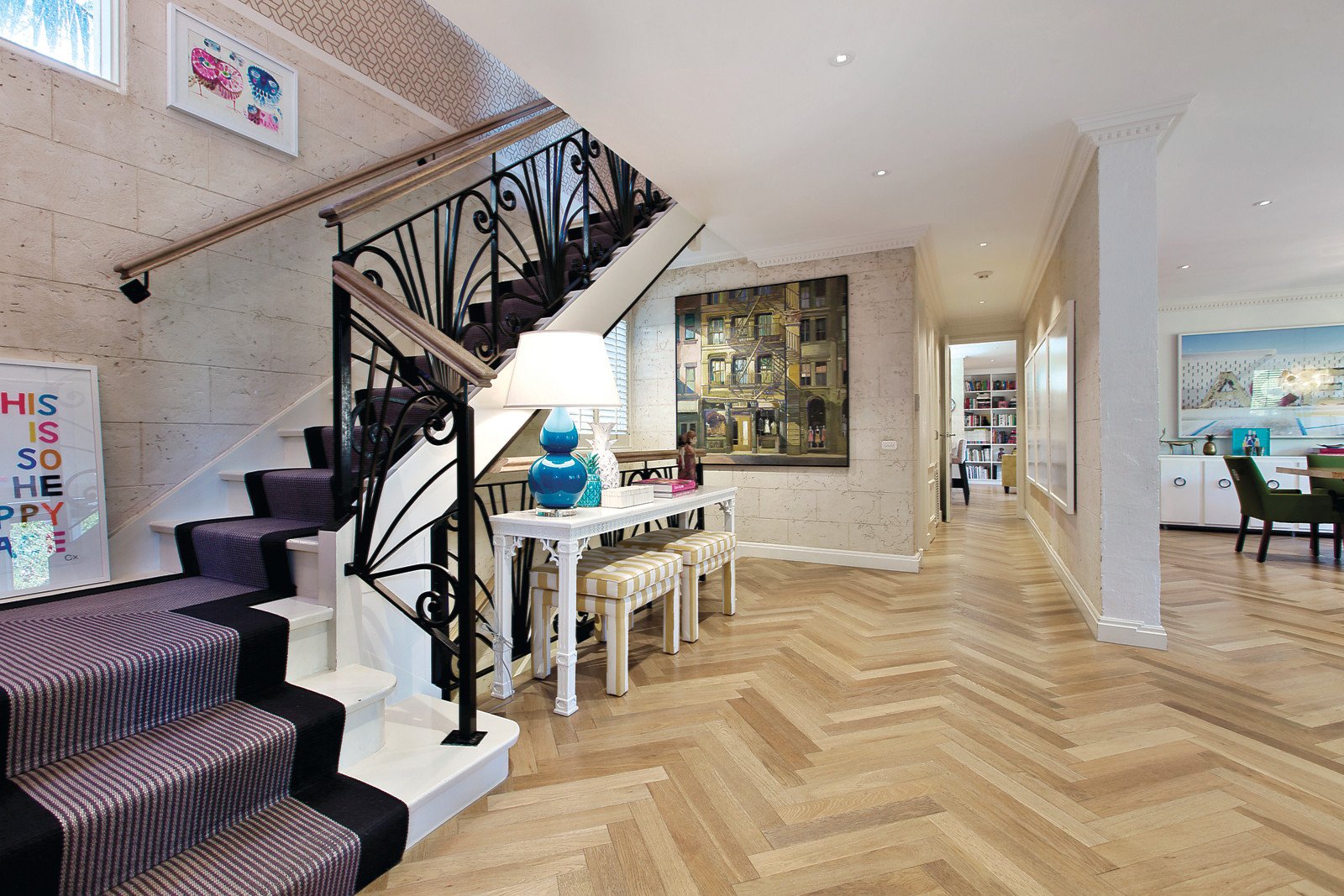 The opulent second floor comprises of five sizeable bedrooms with robes, including a sumptuous main complete with a tranquil retreat, dressing room with remarkable storage and a marble double ensuite. Balcony access is enjoyed by two further bedrooms overlooking the vibrant green court. A centrally located contemporary bathroom and powder room complete this upstairs family haven.