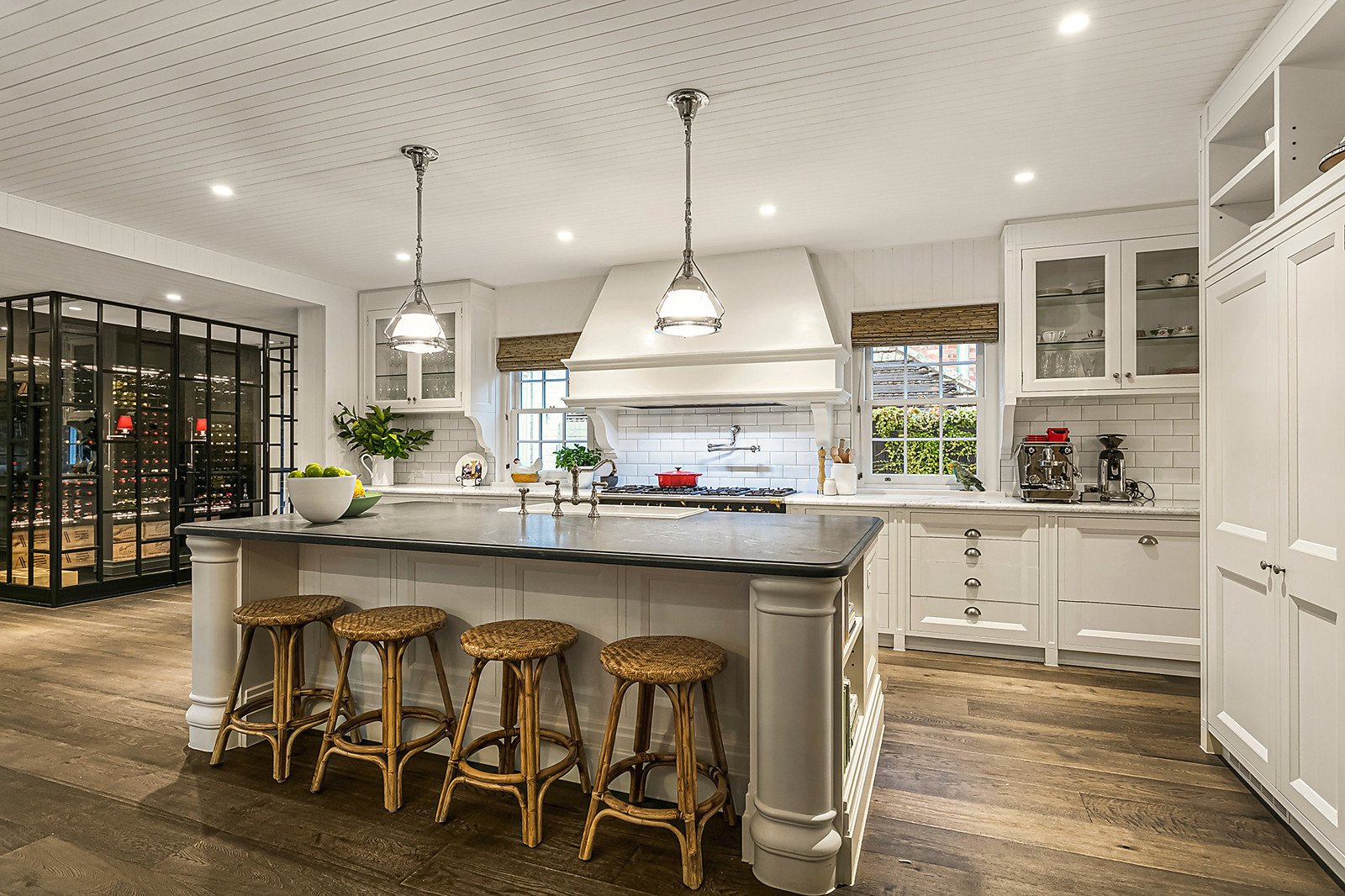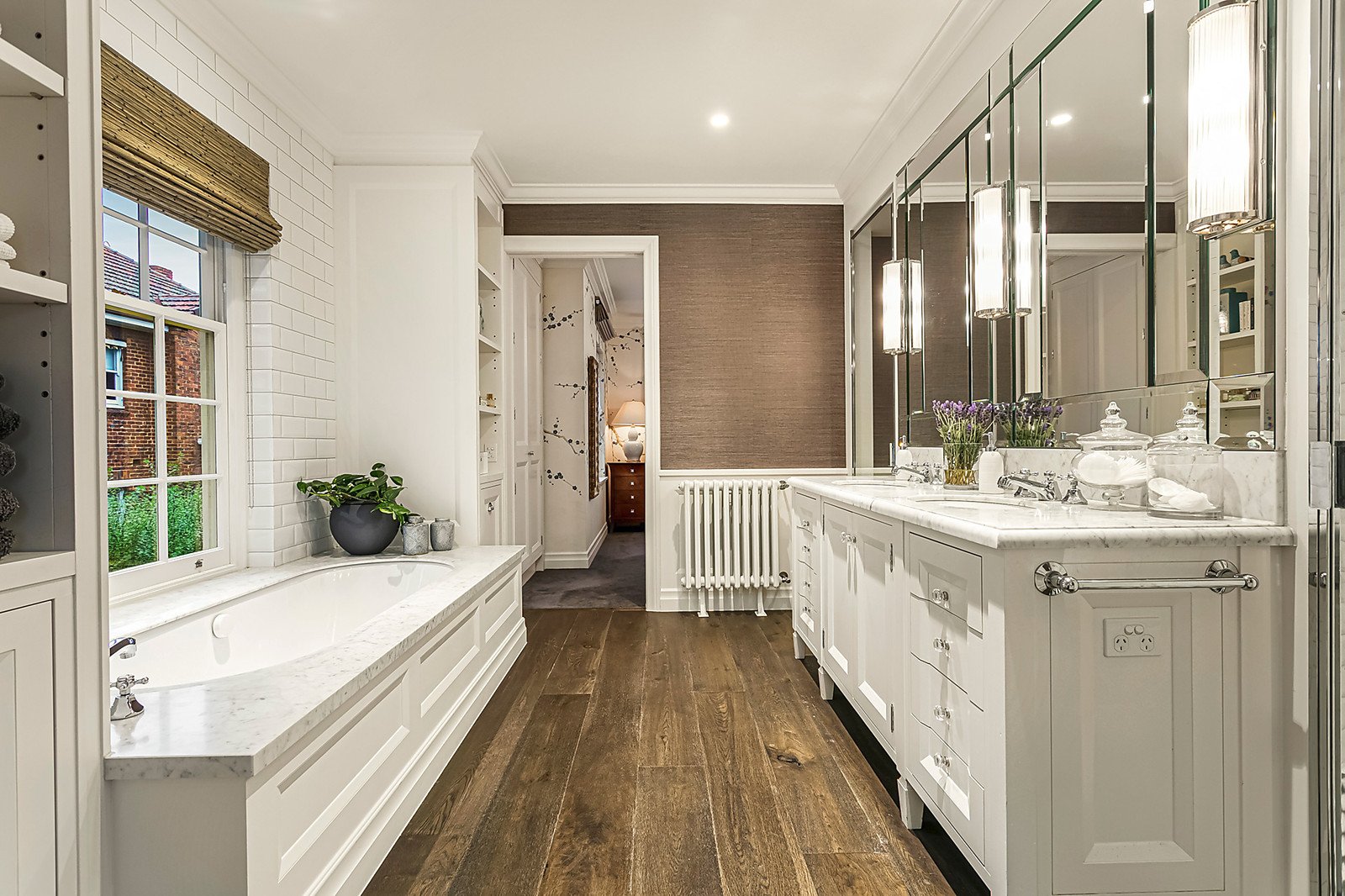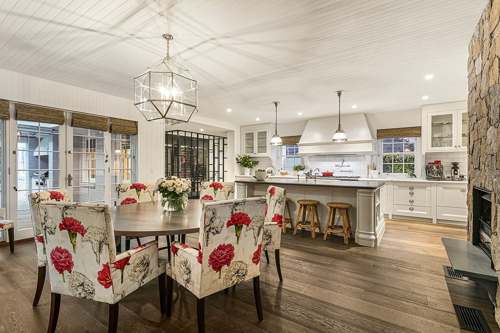 Handsome light filled 1930s Marcus Martin double storey family residence beautifully renovated by Stephen Akehurst showcasing five-bedroom four-bathroom accommodation on a generous 965sqm (approx) allotment superbly positioned only a few minutes' walk to Toorak village. Constructed to the highest standards with the finest materials and finishes, this majestic home features an undercover circular driveway up to the formal entry, through to generous formal sitting and dining spaces and onwards opening up to a spectacular entertainer's kitchen with butler's pantry, meals area and large beautifully landscaped rear garden with heated inground pool and cabana with full bathroom.