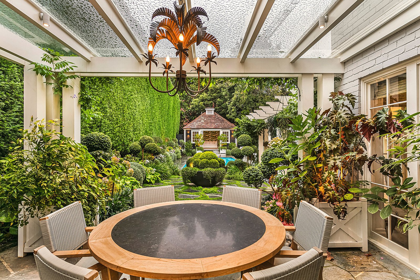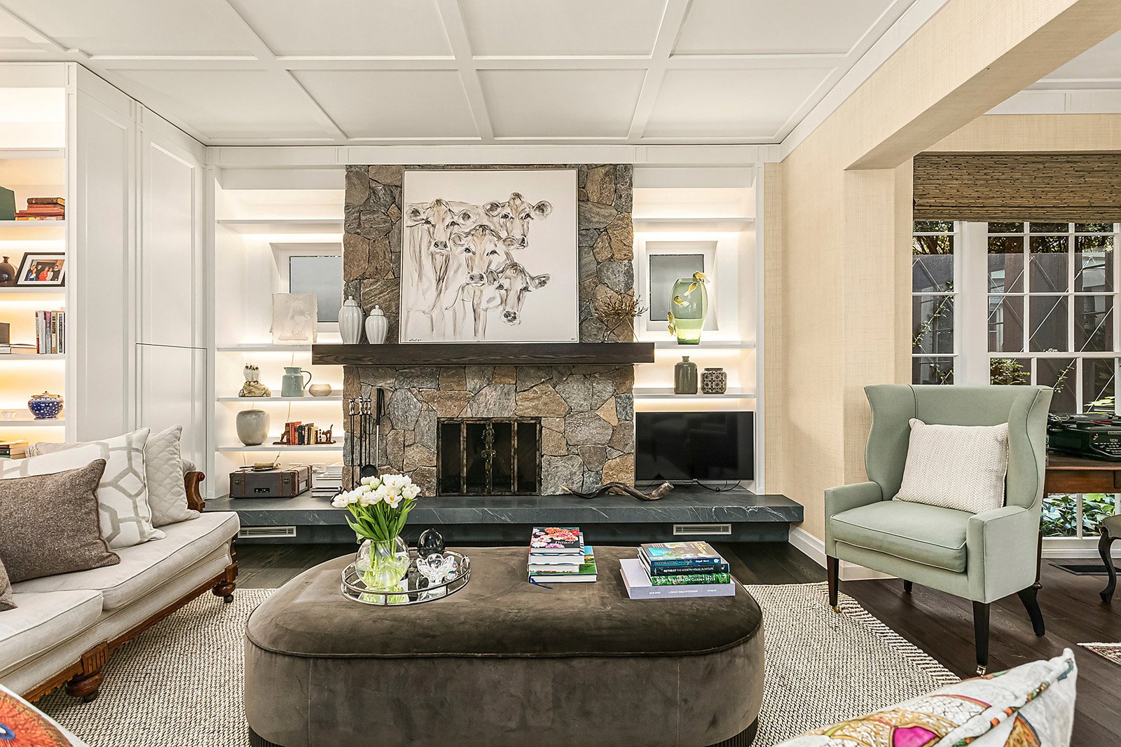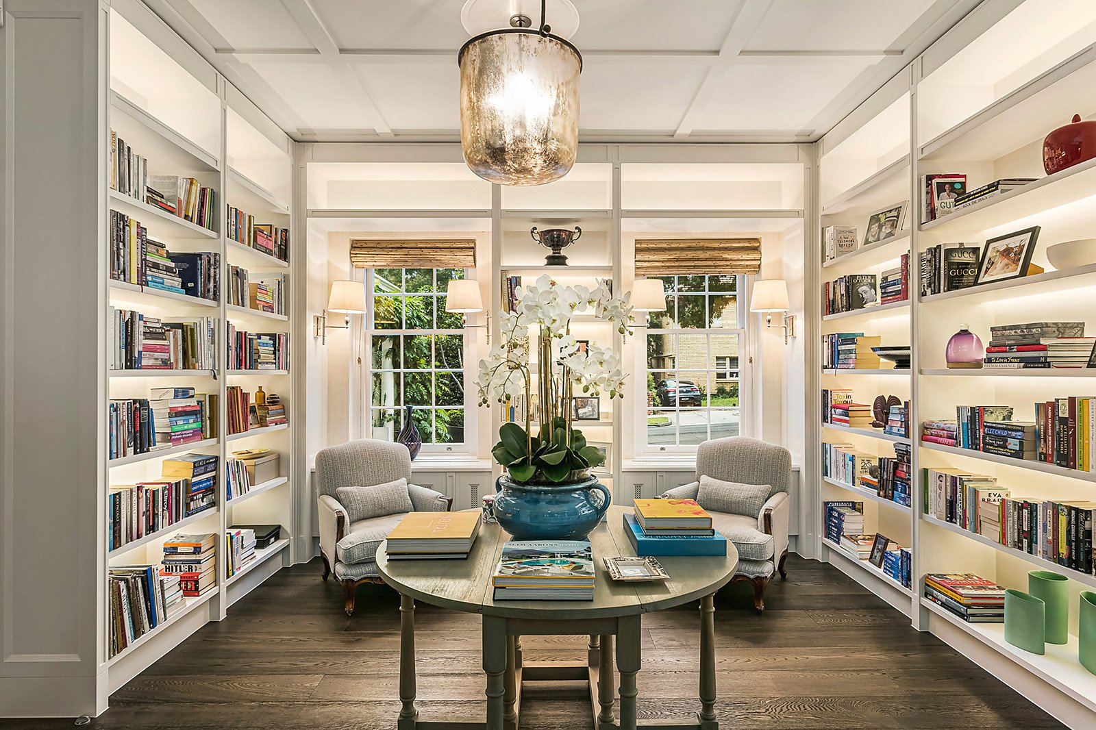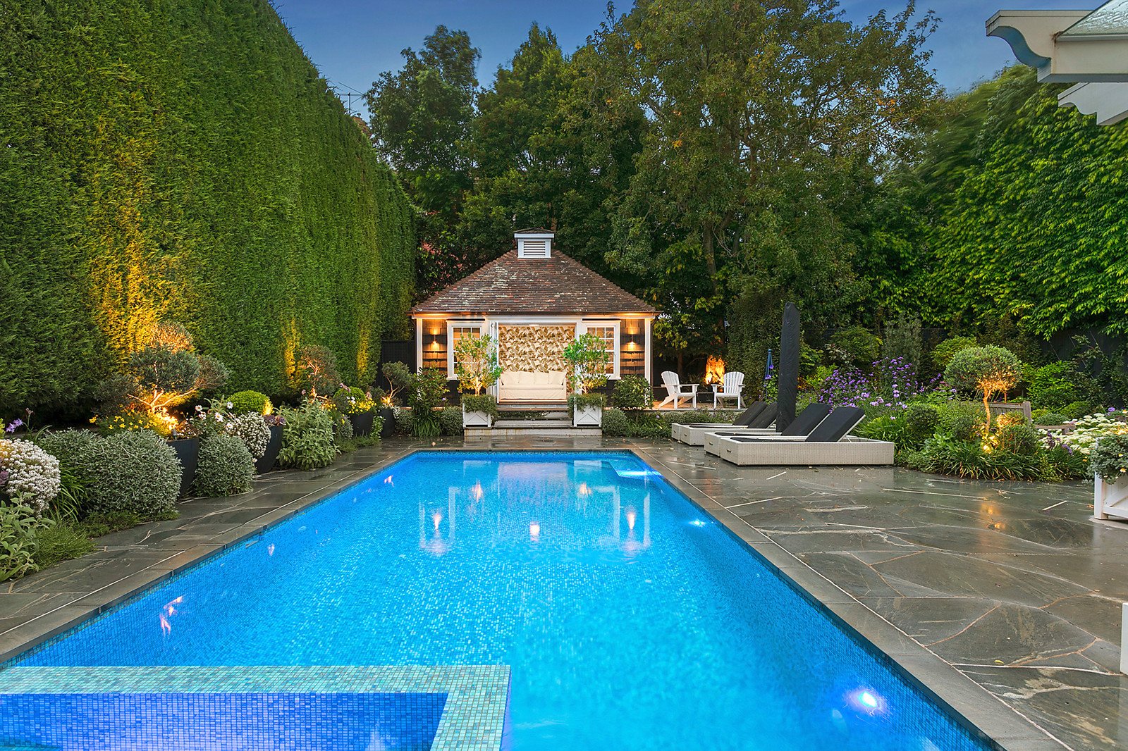 A large den sits off the entry, while a generous family room overlooks the rear garden and pool area, a powder room, integrated cooling, hydronic heating and four-car basement garage with turntable complete this desirable homes list of credentials.