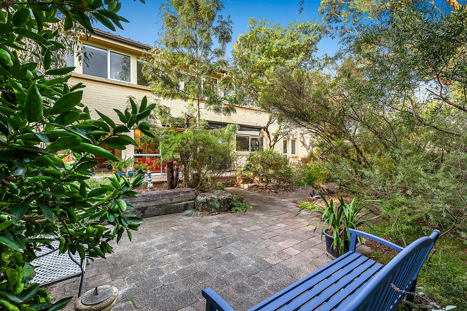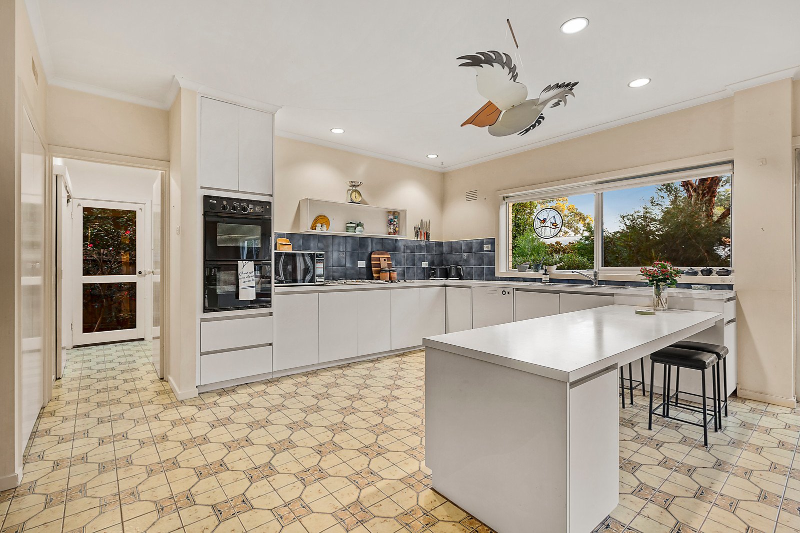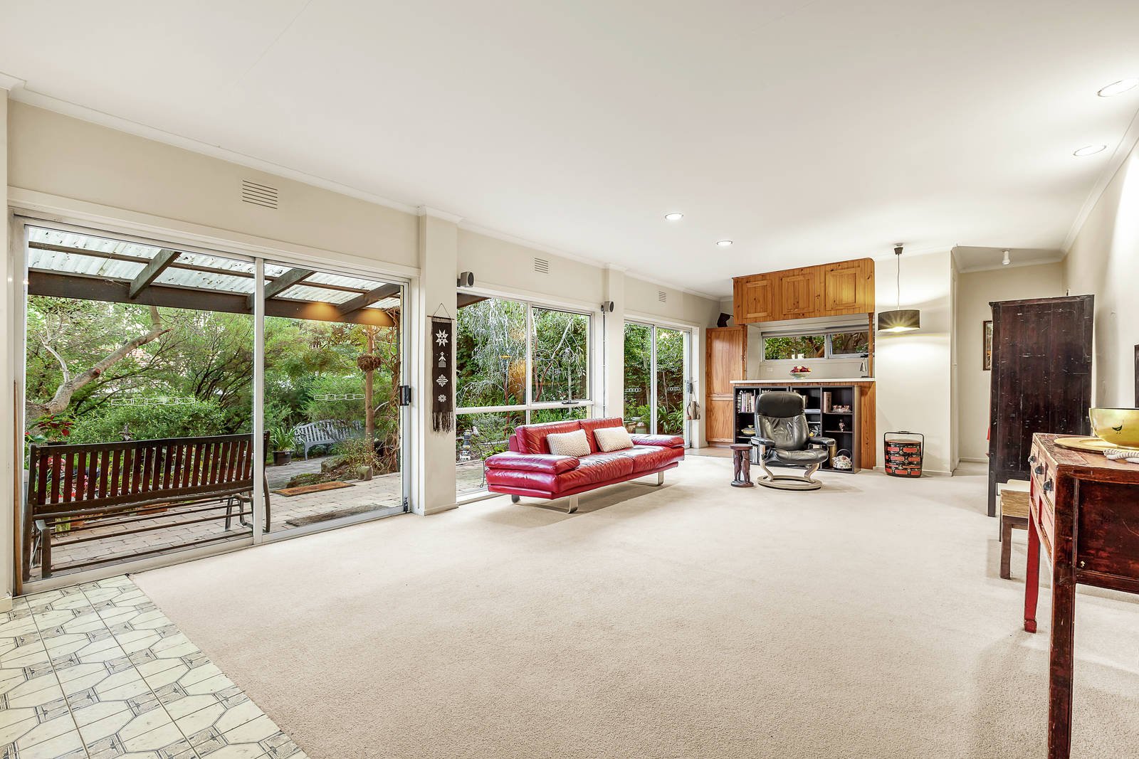 An expansive, open-plan family room with an adjacent laundry, bathroom and bar also includes a well-equipped kitchen, fitted with Miele and Asko appliances opening to a paved alfresco entertaining area in a private, tranquil garden setting. Other features include ducted heating & vacuum, R/C air conditioner, ample storage including roof and storeroom, solar panels, rain water tanks, garden watering, garden and wood sheds plus a carport and tandem off-street parking.