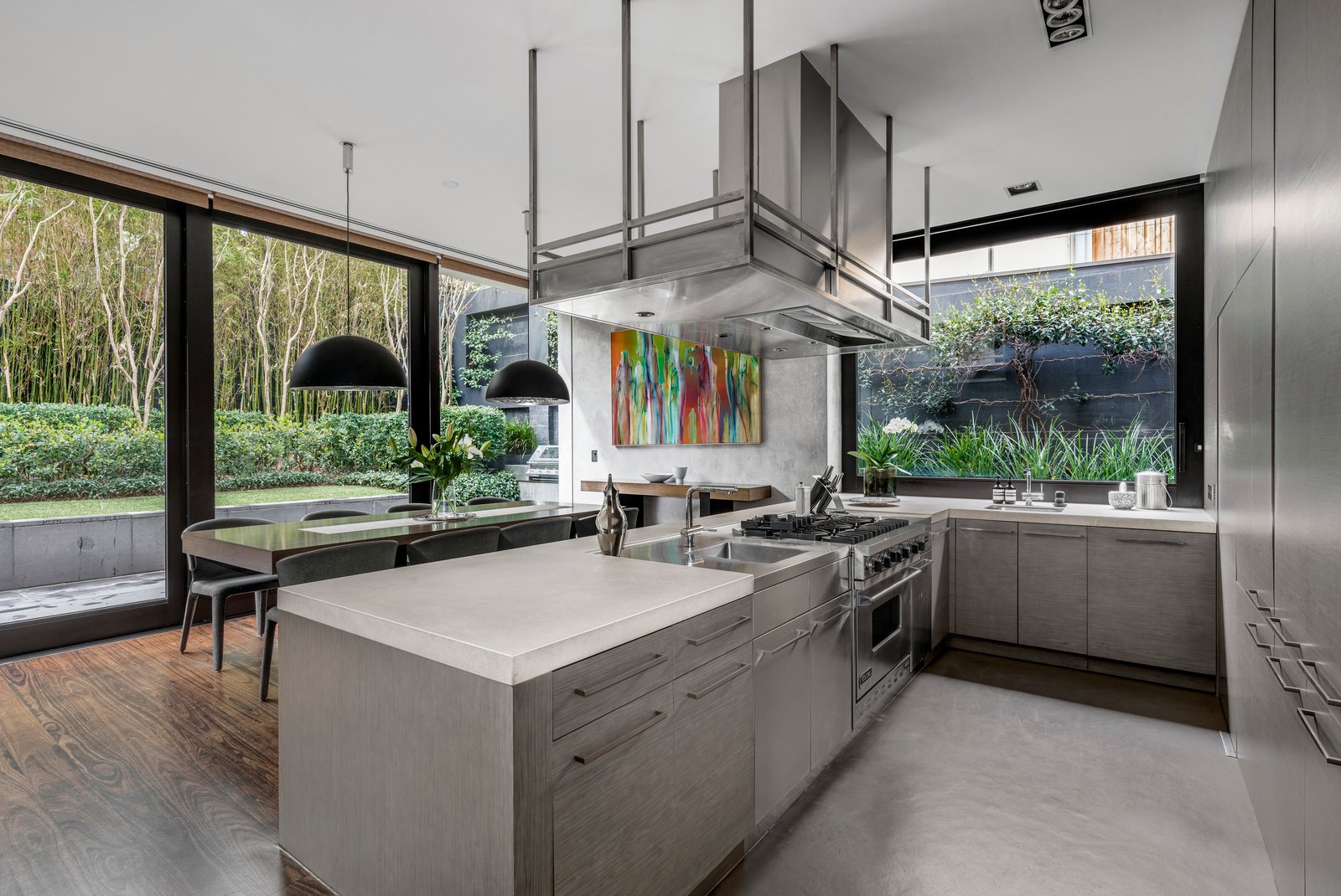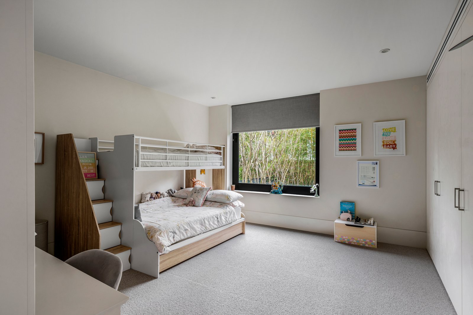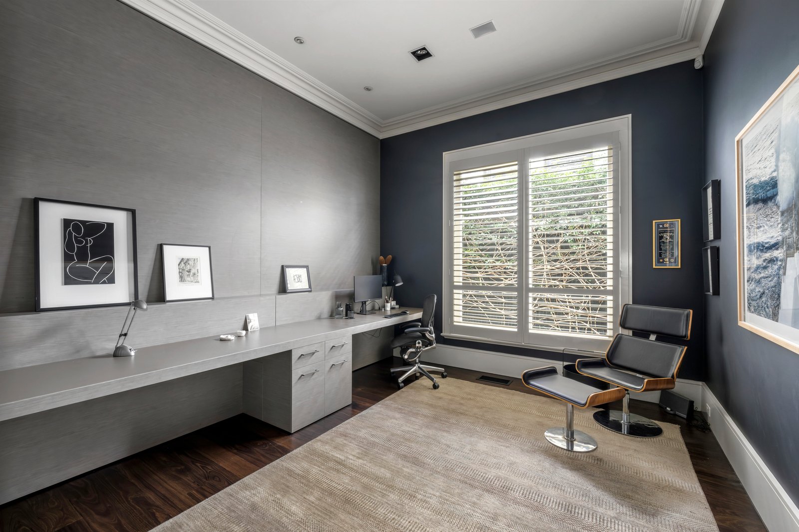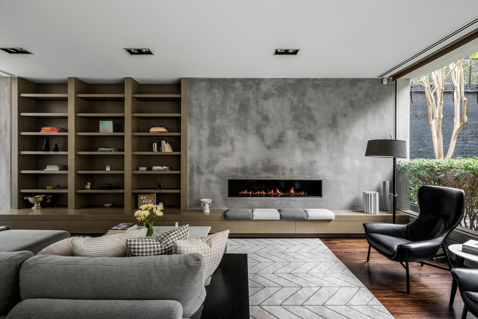 Framed by a striking, solid-brick façade and landscaped gardens, the home unfolds with exceptional versatility and brilliant northern light, offering four bedrooms and three bathrooms, including a ground-floor main suite with a walk-in robe and en-suite bathroom, as well as a flexible executive study. Refined formal sitting rooms celebrate the period’s grace through a dramatic, moody palette, leading past a glass-encased, water garden that signals the transition to the striking contemporary extension. A gas fire and the tranquillity of the gardens offer an undeniable ambience, accompanied by a superbly appointed chef-inspired kitchen, finished with textured stone benches, a commercial-grade Viking stove, an integrated Bosch dishwasher and extensive concealed storage, including a walk-in pantry. Walls of full-height glass draw the eye to the private rear gardens, where towering bamboo and exquisite crepe myrtle enclose a bluestone entertaining terrace and lawn, complete with a built-in plumbed barbecue.