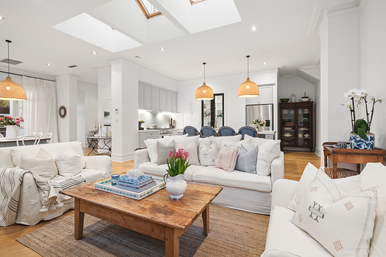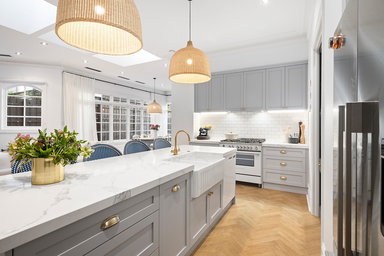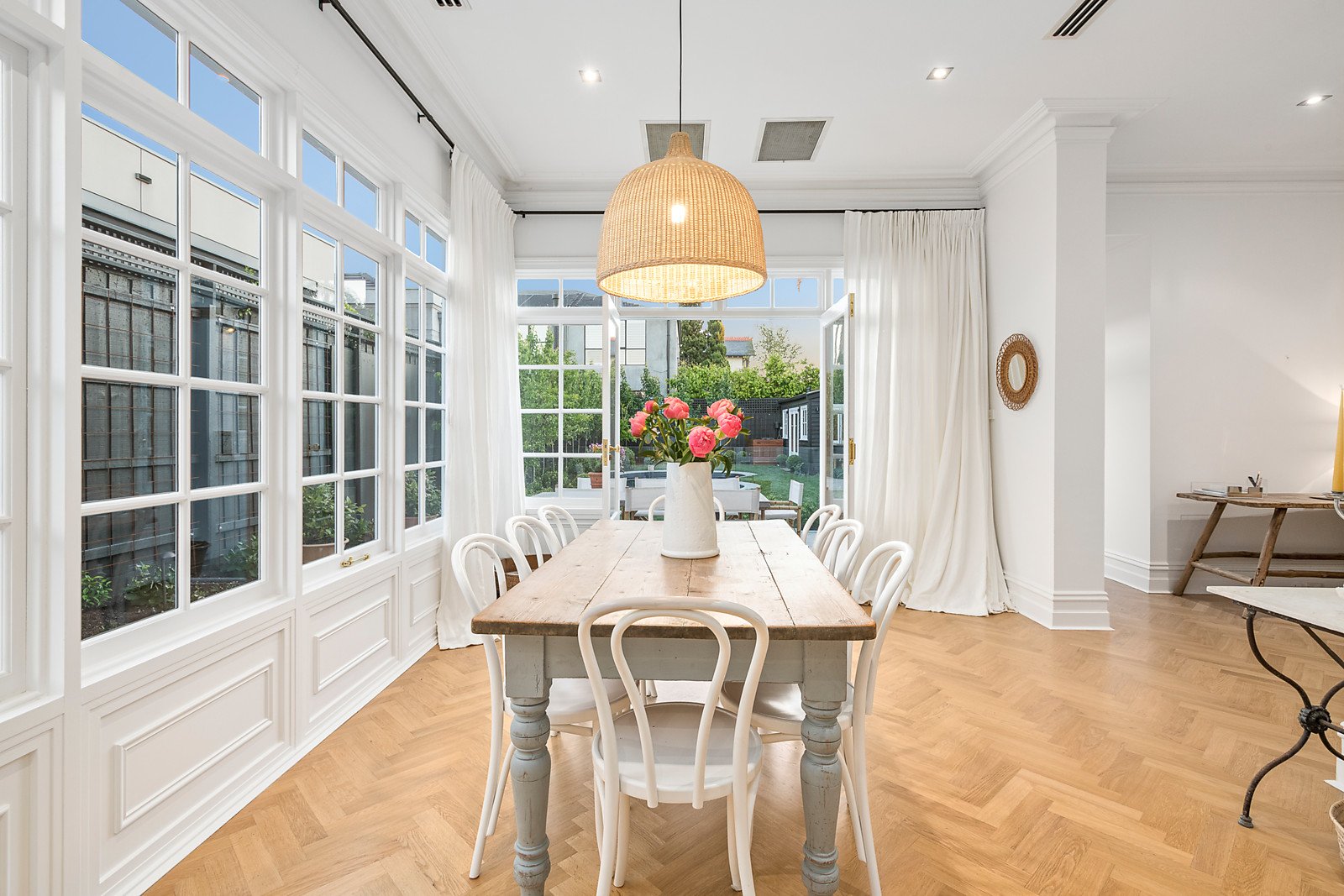 "Esperance" is a magnificent Victorian home fully renovated for a contemporary Brighton lifestyle, exclusively located four doors from the beach and metres to Church Street. Originally built as a Catholic girls' school by the sea, the original grandeur and fine craftsmanship merge with a new state-of-the-art renovation, bay view from upstairs, and beautiful Paul Bangay-designed gardens. High-ceilinged formal lounge and dining rooms are elegantly enhanced with century-old alabaster fireplaces and contemporary chandeliers, and the ornate two-way staircase and decorative plasterwork are reminders of this home's 1880's origins. What is even more spectacular is the luxury transformation. The Hamptons-style family room and meals area look out to the pool and botanical beauty created by one of Australia's finest landscape designers. Only the best finishes and features enhance the new designer kitchen with a butler's pantry, Italian-made Fisher & Paykel range, wine fridge, brass tapware and premium stone surfaces. Families will love the four-bedroom spaciousness, four living areas, and emphasis on luxury. There's a poolhouse with servery, ground-floor study or playroom, well-designed laundry/mudroom, and three bathrooms. Admire the bay and Brighton Baths from the verandah outside the beautiful main bedroom, and love living this close to the beach, Royal Brighton Yacht Club and waterfront cafes. The transformation is exquisite with dramatic linen drapes, full new exterior paintwork, and solid Tasmanian oak herringbone floors. High-fenced privacy is complemented by keycode and remote-control gate entry to the garage and off-street parking. Premium address a stroll away from Brighton Grammar, Firbank and Church Street.