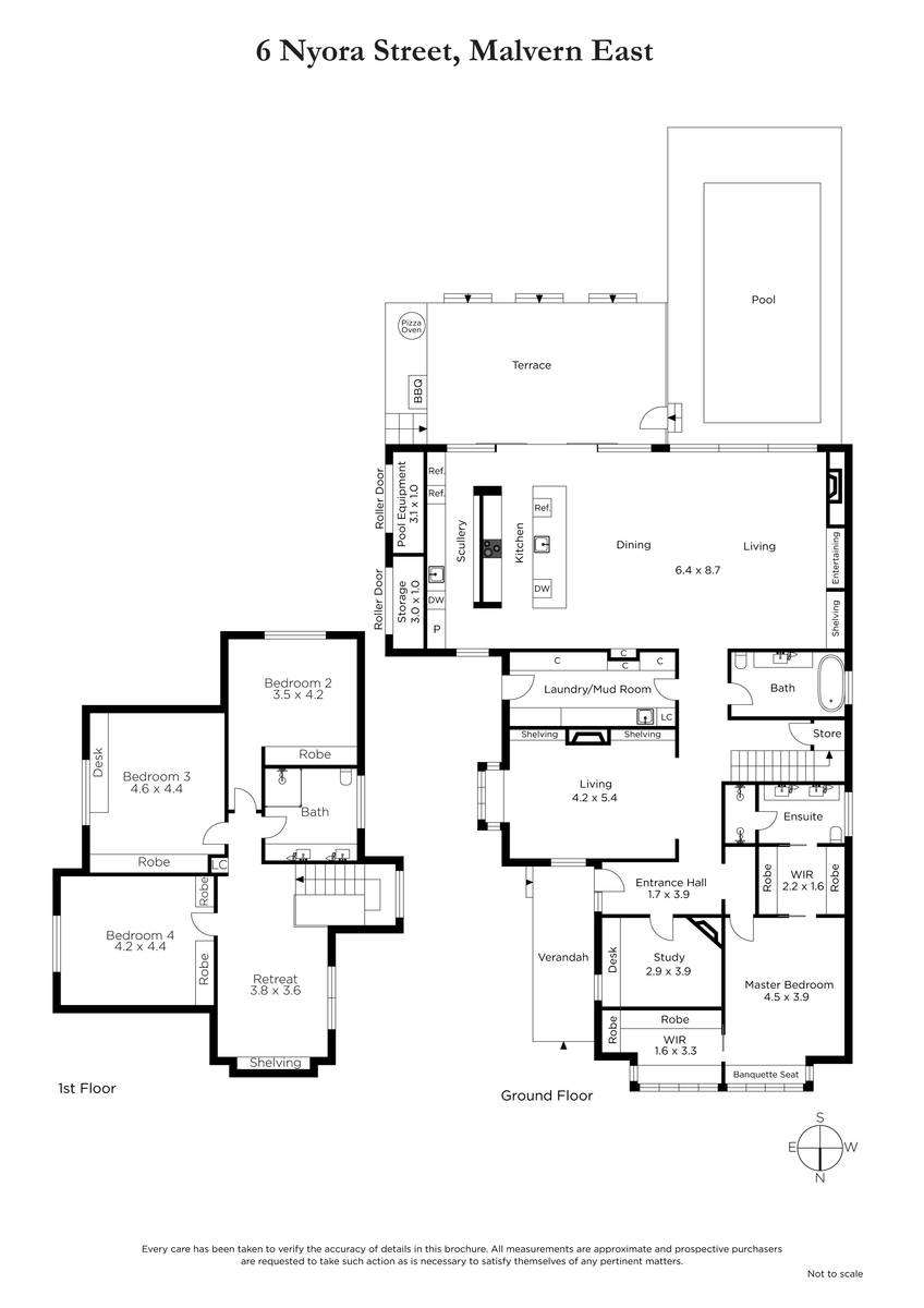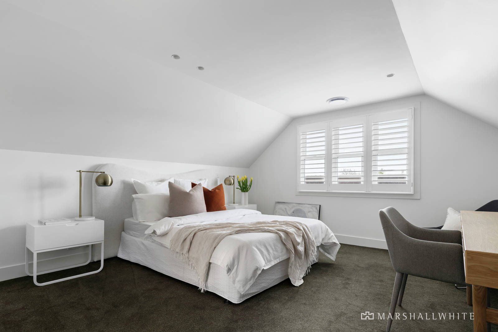 Framed by a broad verandah, the welcoming entrance hall, inviting home office with fireplace and gracious sitting room with a stone fireplace all feature high ornate ceilings and wide oak floors. Soaring 3.4m ceilings accentuate the scale of the palatial open plan living and dining room with a built in bar and gas pebble fireplace with grey stone plinth and surround. The deluxe kitchen is a chef's delight with its Signorino stone benches, premium Aga 100cm series oven, integrated Siemens fridge/freezer, Vintec wine fridge, Liebherr drinks fridge and butler's pantry. Full height glass sliders open the living spaces to a large pergola covered bluestone terrace with BBQ and pizza oven and the picturesque private garden with solar/gas heated pool. The captivating main bedroom with lush window seat, dual walk in robes and designer en suite sets a benchmark in luxury that is matched upstairs by a fabulous children's zone comprising three spacious bedrooms with robes, a retreat and stunning bathroom. A third bathroom with bath is on the ground level.