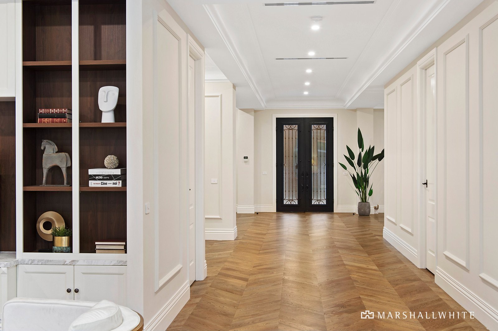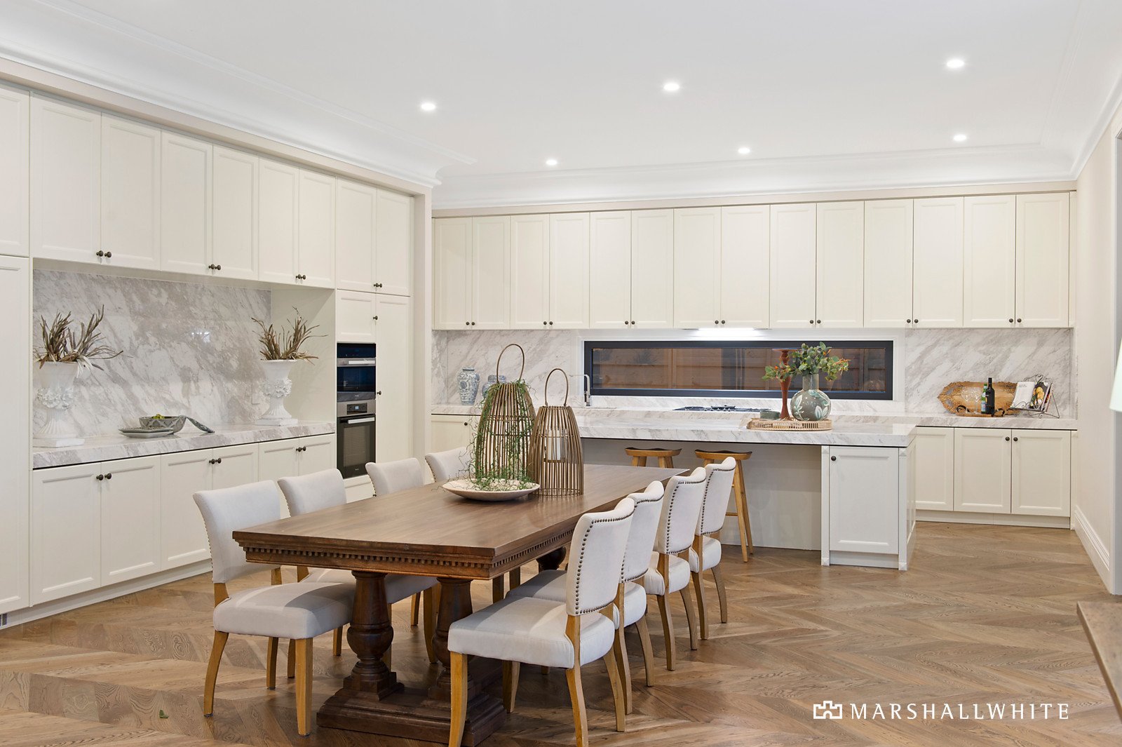 Built to perfection and sure to delight, the home opens up to reveal a staggering sense of light and proportion, all with beautiful Oak under foot, as it flows to an open-plan kitchen/dining/living. Proudly showcasing a Butler's Pantry, the kitchen is arranged around an imposing, waterfall-edged island of stone that is the perfect place for friends and family to enjoy a drink while you prepare their meals on a suite of Miele appliances - all overlooking the sunny joy of the swimming pool.