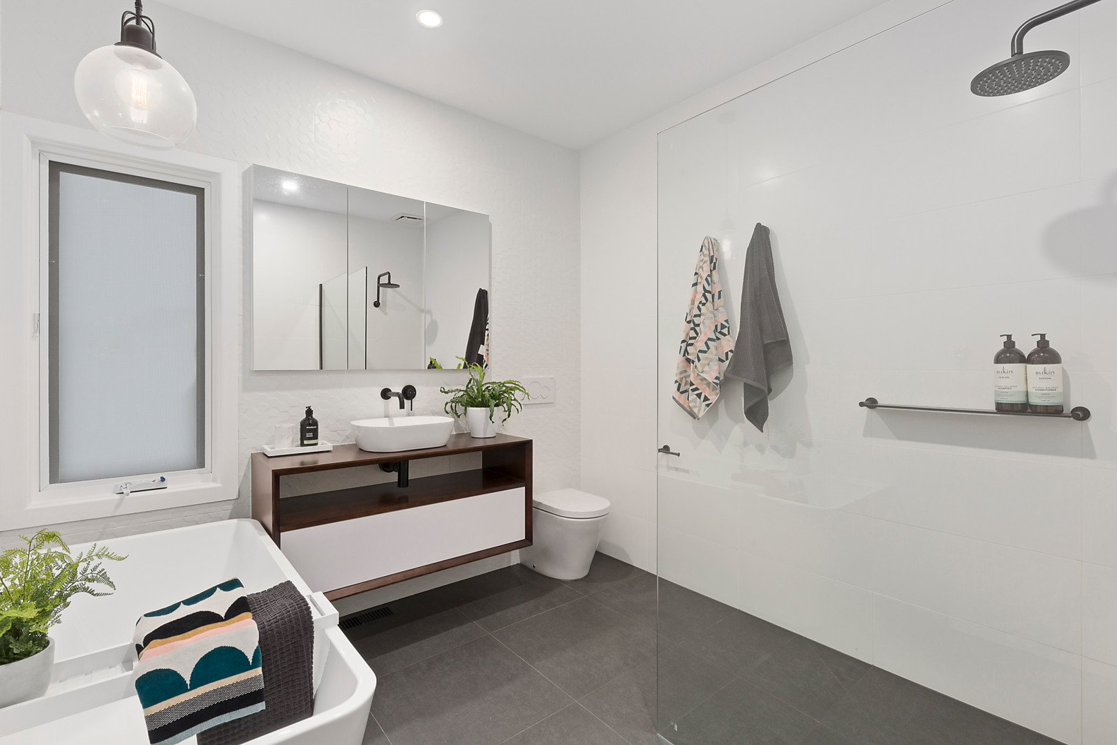 A secluded & sundrenched second level master retreat enjoys treetop vistas and offers access to a private deck, chic ensuite, extensive built in robes and retreat. Relaxation and recreation is hassle free with a superb alfresco all-weather entertaining deck that leads to lush low-maintenance lawns & easy-care drought-resistant gardens.