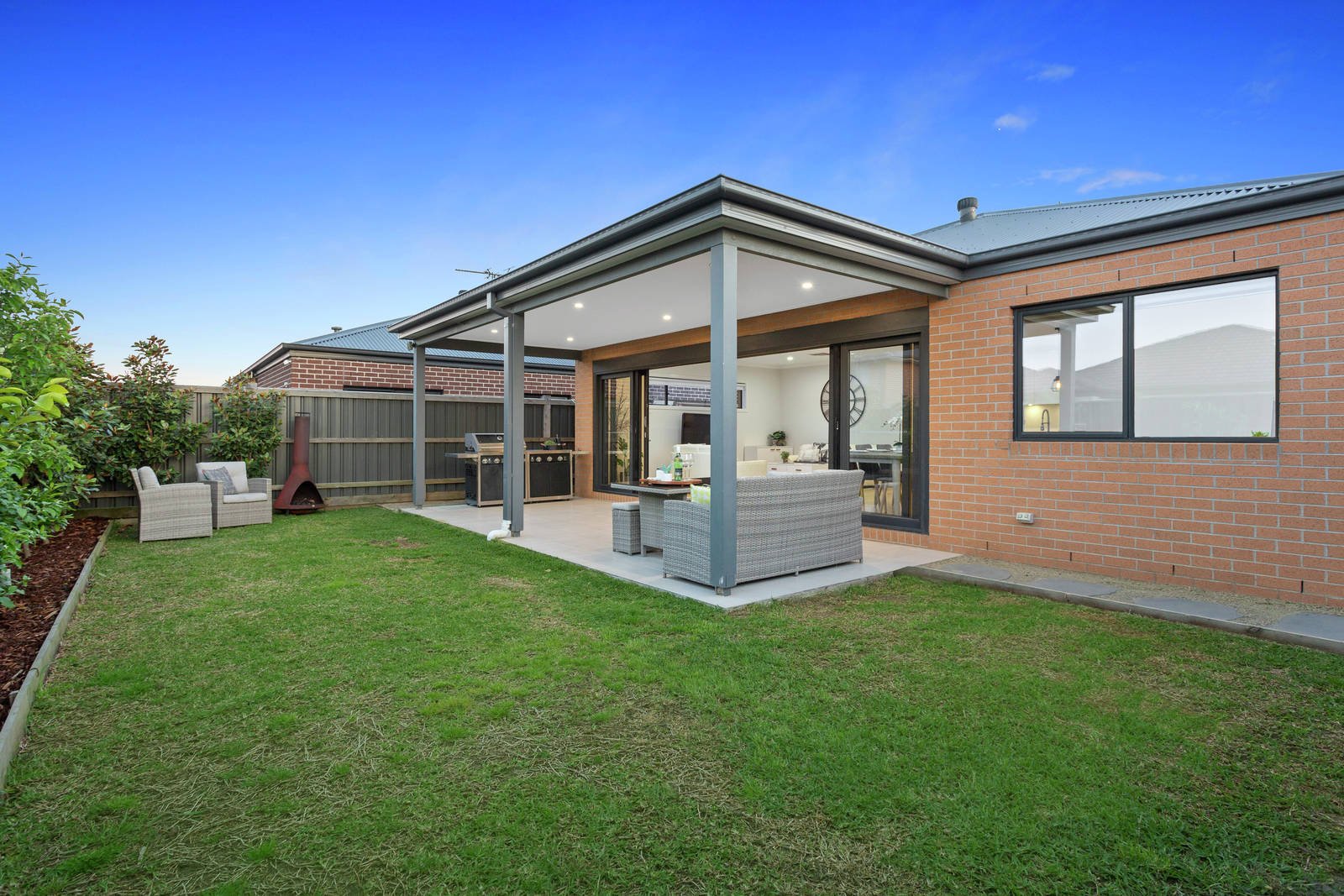 An instantly appealing façade introduces this super stylish family home set in landscaped gardens on the Acacia Estate. Wide floorboards accentuate a spacious and flowing layout delivering a superb contemporary living and entertaining lifestyle home. The light and bright interior is a pleasure to enter and features four bedrooms, three with BIRs and the main has a WIR and sparkling ensuite plus a similarly styled family bathroom and formal living area. Plus a fabulous rear family domain incorporating a study and sleek kitchen with prestige Technika and Fisher & Paykel appliances and adjacent laundry opening through sliding doors to a covered alfresco dining area with zip track screens overlooking the garden. Creating a superb precinct for year-round indoor/outdoor entertaining and relaxation with family and friends. Other attributes of this delightful home includes ducted heating and evaporative cooling, high quality fixtures and fittings and a remote double garage with secure internal access.
