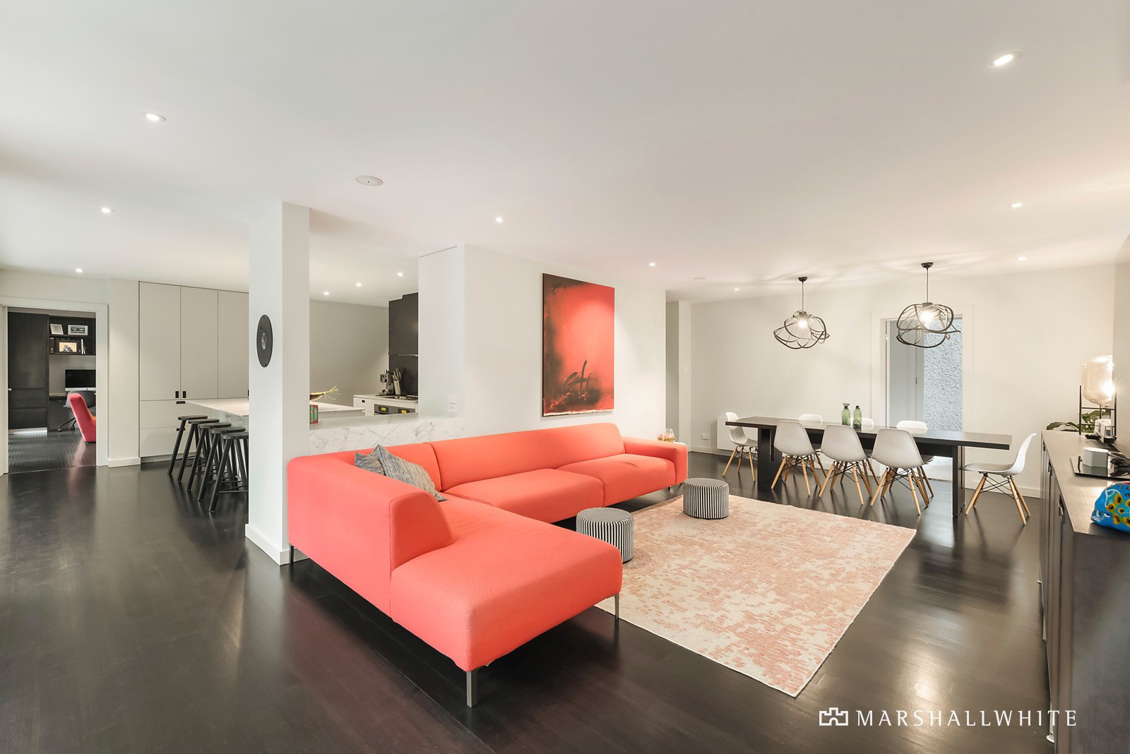 Exclusively positioned in a coveted location near elite schools, Malvern Rd, Glenferrie Rd and Toorak Rd trams and High St shops and restaurants, it includes an alarm, hydronic heating, RC/air-conditioning upstairs, designer lighting, Bose audio, powder-room, family laundry, irrigation, workshop, auto gate and double garage with roof storage.