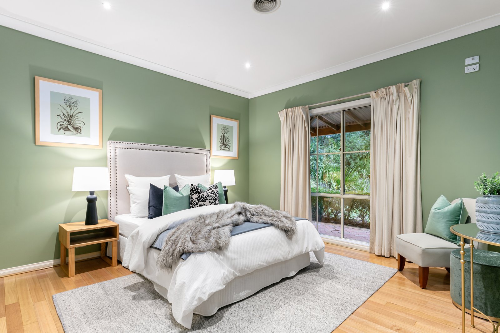 The main bedroom features a walk-in robe and spa-bath ensuite. Three additional robed bedrooms are serviced by a family bathroom and convenient powder room. A dedicated study, laundry, ducted heating, vacuum, evaporative cooling, and split-system air conditioner enhance the home's functionality and comfort.