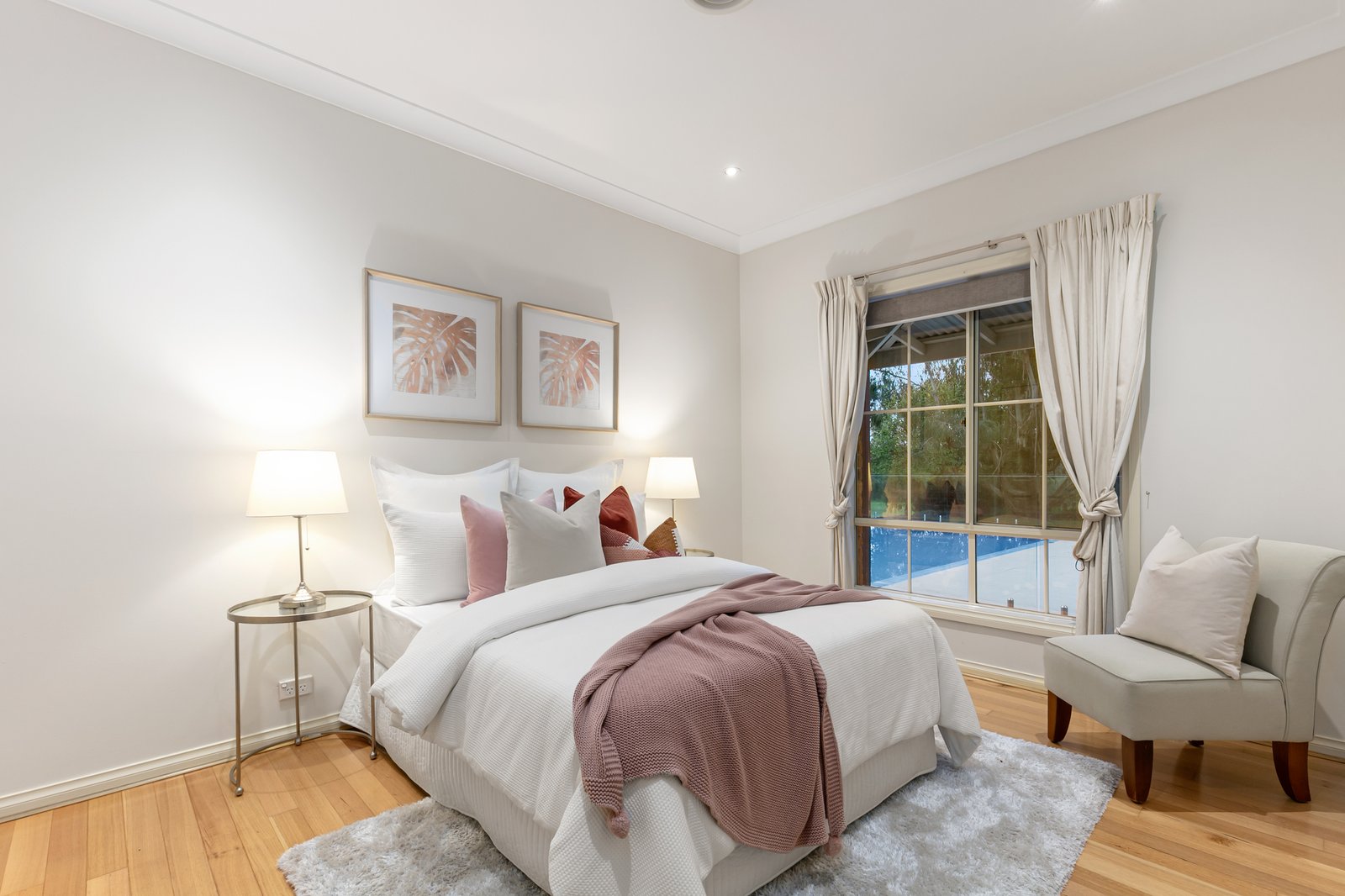 Outside, a contemporary pool area is serviced by a cabana house with built-in flued barbeque, sink, and toilet, creating an ideal space for outdoor entertaining. The pool provides countryside outlooks.