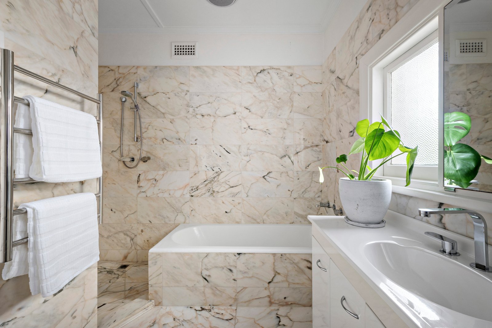 Framing verdant outlooks in all directions, the home enjoys a wonderful connection to its natural surrounds, most notably a huge primary bedroom sanctuary, set upstairs, that allows parents to enjoy the unique privilege of waking to vivid vistas of a huge Coral tree whist also enjoying a walk-in robe and a marble-tiled ensuite with separate powder room. Indeed, each of the bedrooms is impressively scaled – particularly an oversized front bedroom that gazes out to the courts of Kooyong Lawn Tennis Club and the fields of St Kevins College.