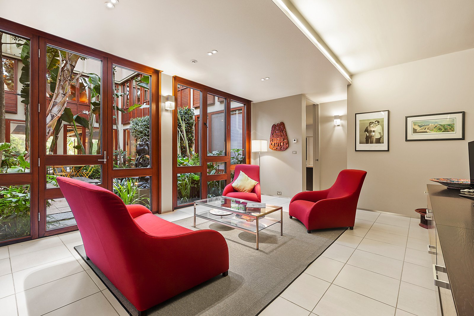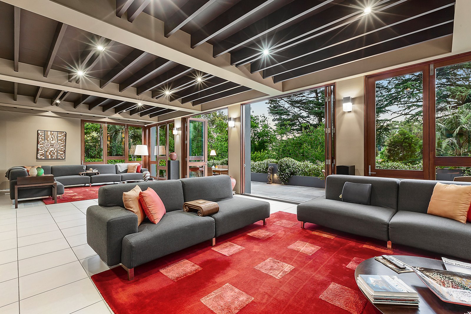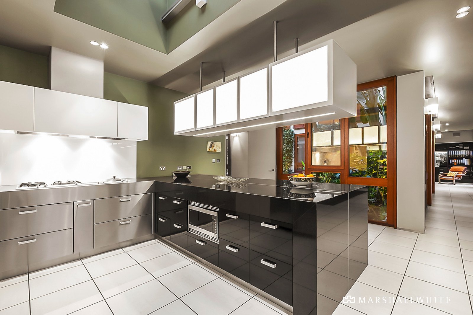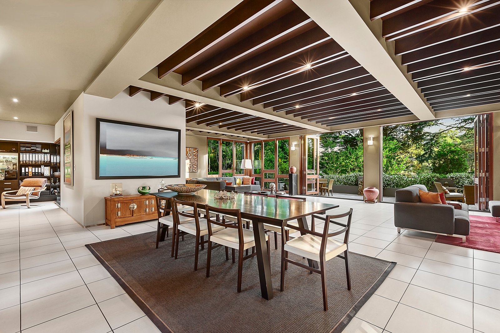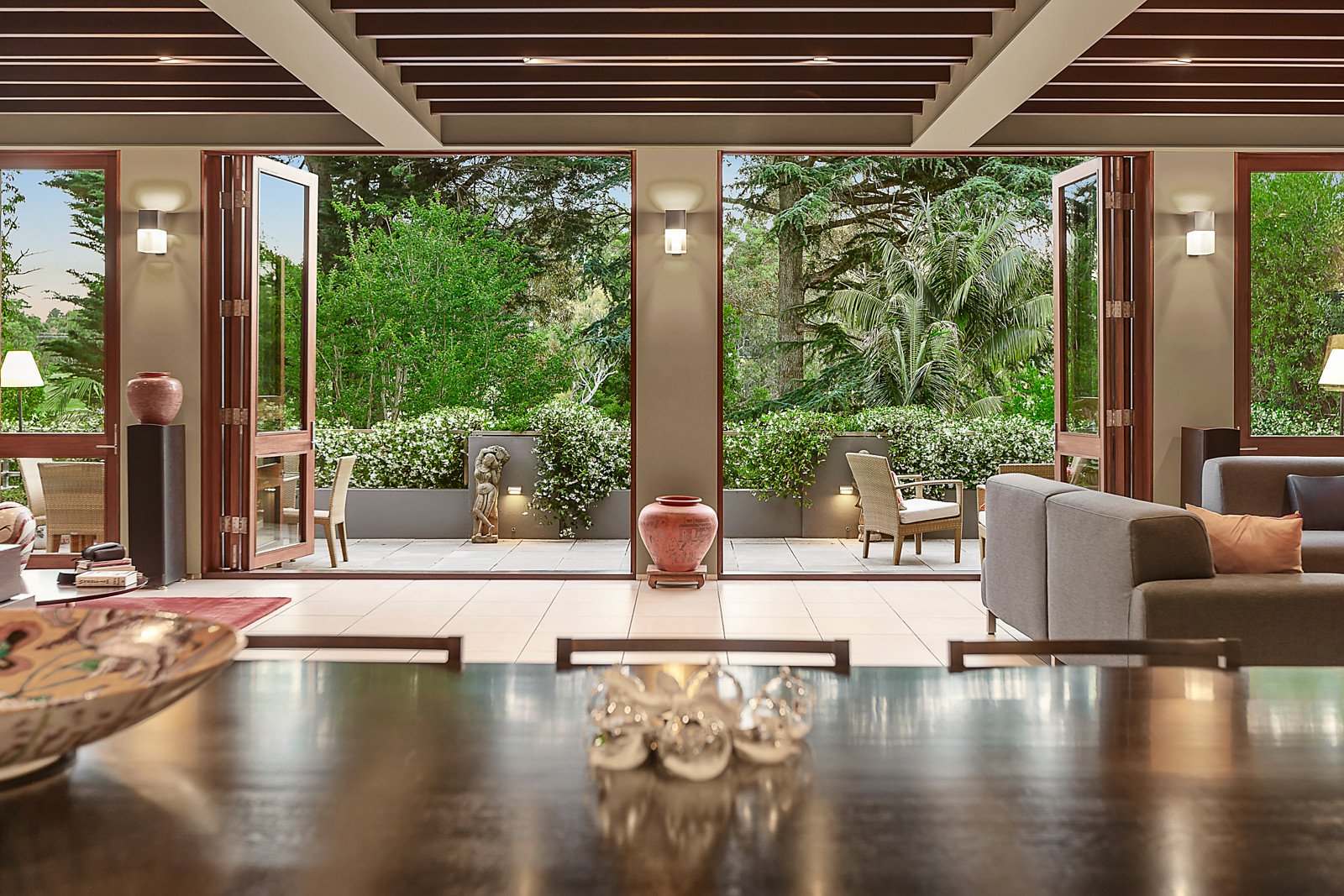 Brilliantly designed the home is highlighted by an interior flooded with natural light from large windows strategically positioned to provide tranquil vistas of the soaring trees surrounding the home combined with leafy garden outlooks and views across an infinity pool, water feature and beautiful, lush gardens flowing to a deck and jetty on the Yarra bank.