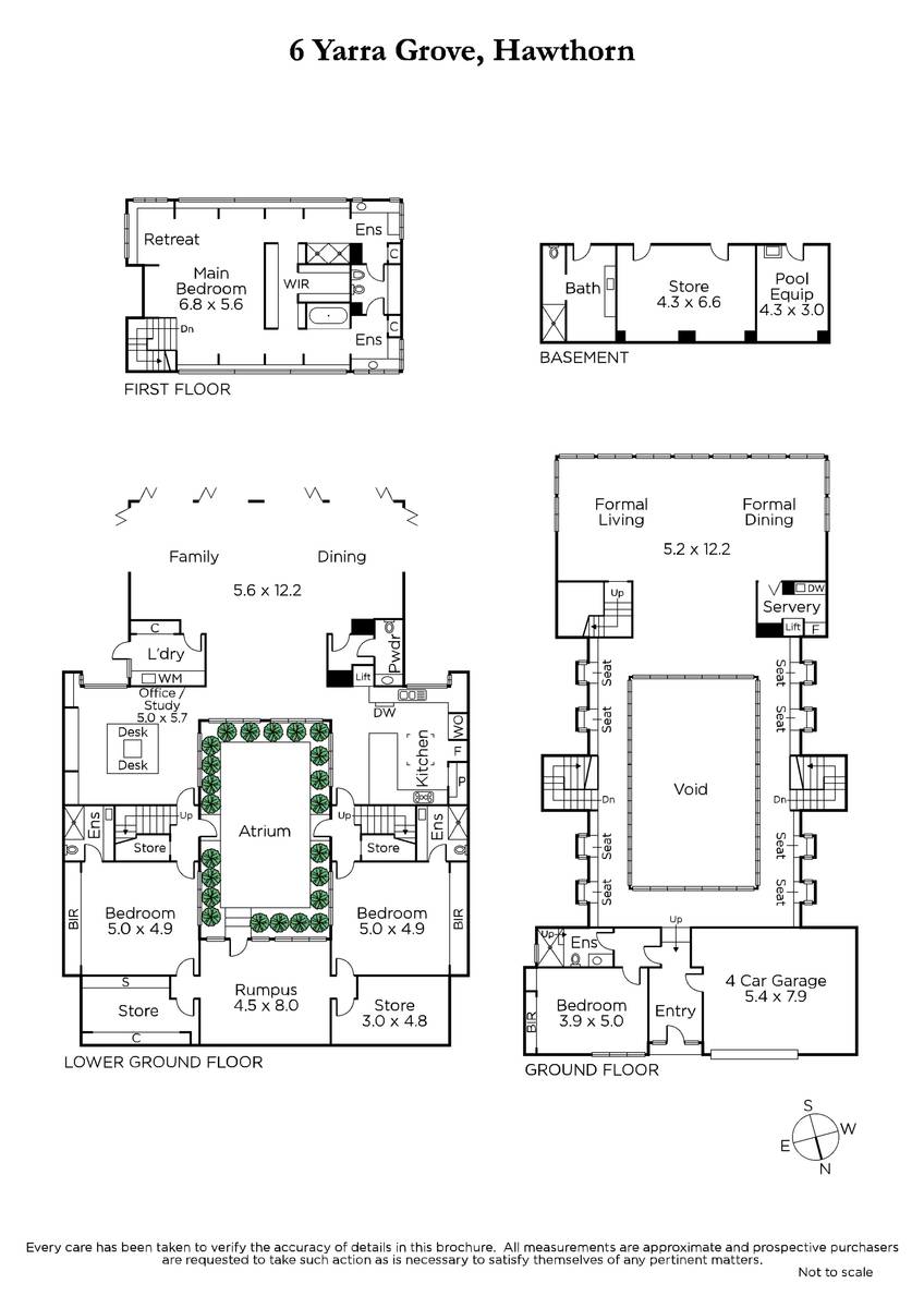 Built around a central atrium and void this elegant residence provides a stunning lifestyle haven in harmony with the surrounding environment. With the street level opening to a foyer leading to guest bedroom with ensuite plus a gallery and floor-to ceiling library with alcove seating, flowing to the formal living and dining room. The lower ground floor, opening to the central courtyard, features a further two bedrooms each with BIRs and ensuites, a rumpus room, office/study and informal family living opening to an alfresco terrace. Serviced by a superb entertainer's kitchen equipped with stainless steel and granite bench-tops plus prestige Gaggeneau and Miele appliances, WIP and a dumb waiter; with adjacent laundry and powder room. Whilst the main bedroom is located on the top level complete with a retreat area, dual ensuite, WIRs and tree-top river views.