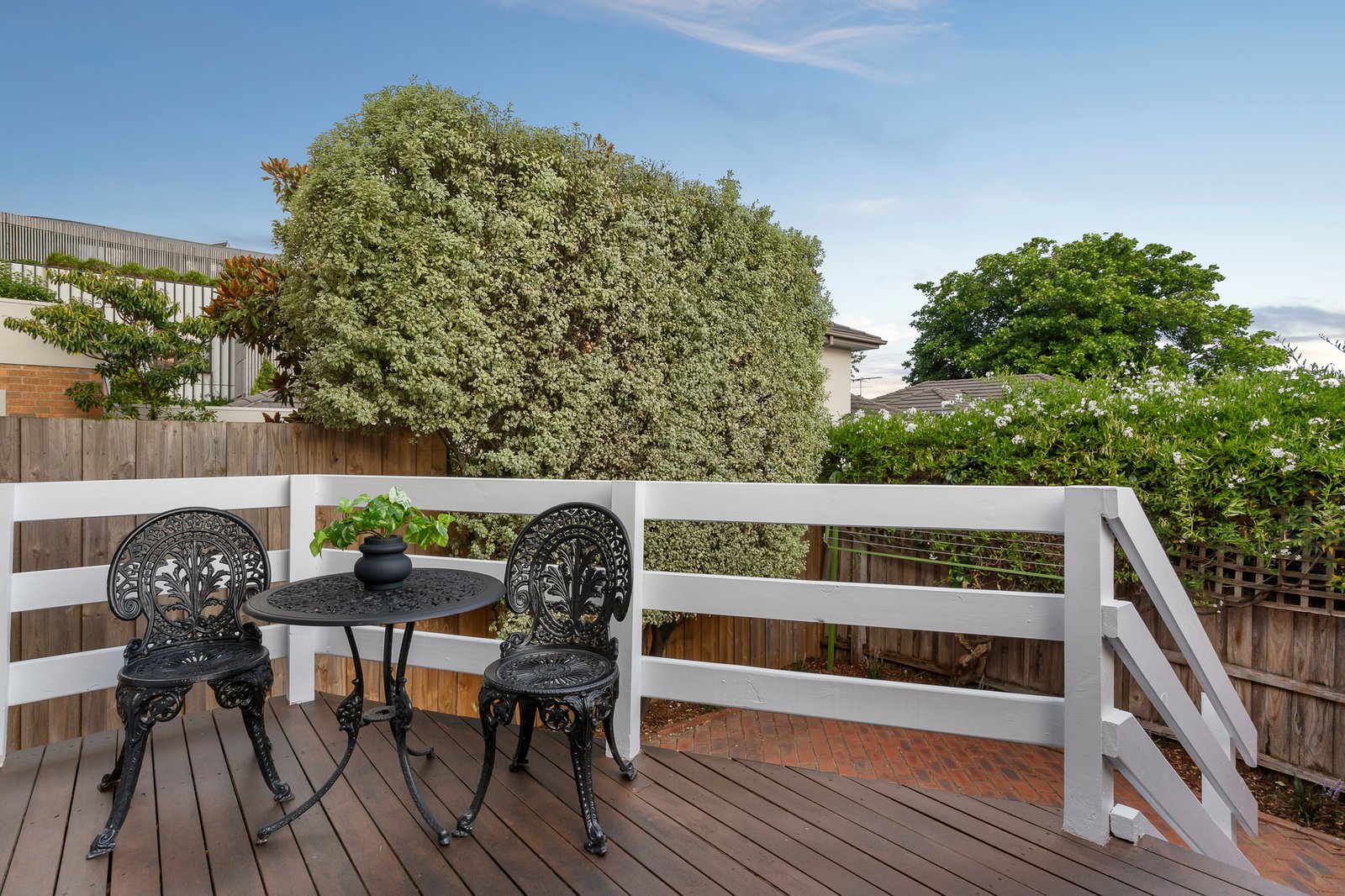 The inviting interior features an entrance foyer opening to a generous sitting room overlooking the north-facing mature garden. With an adjoining dining room opening to an eastern deck and a spacious open-plan family room including a modern well-equipped kitchen with quality all-white appliances which leads to a separate laundry, rear deck and private courtyard. Providing a choice of two spaces to enjoy the outdoors. Complemented by three zoned bedrooms, the front main, overlooking the garden, has a WIR and light-filled ensuite; while the rear two have built-in robes and share a family bathroom. Other features include an alarm, ducted heating, ducted vacuum and a remote double lock-up garage with courtyard access and room for turning.